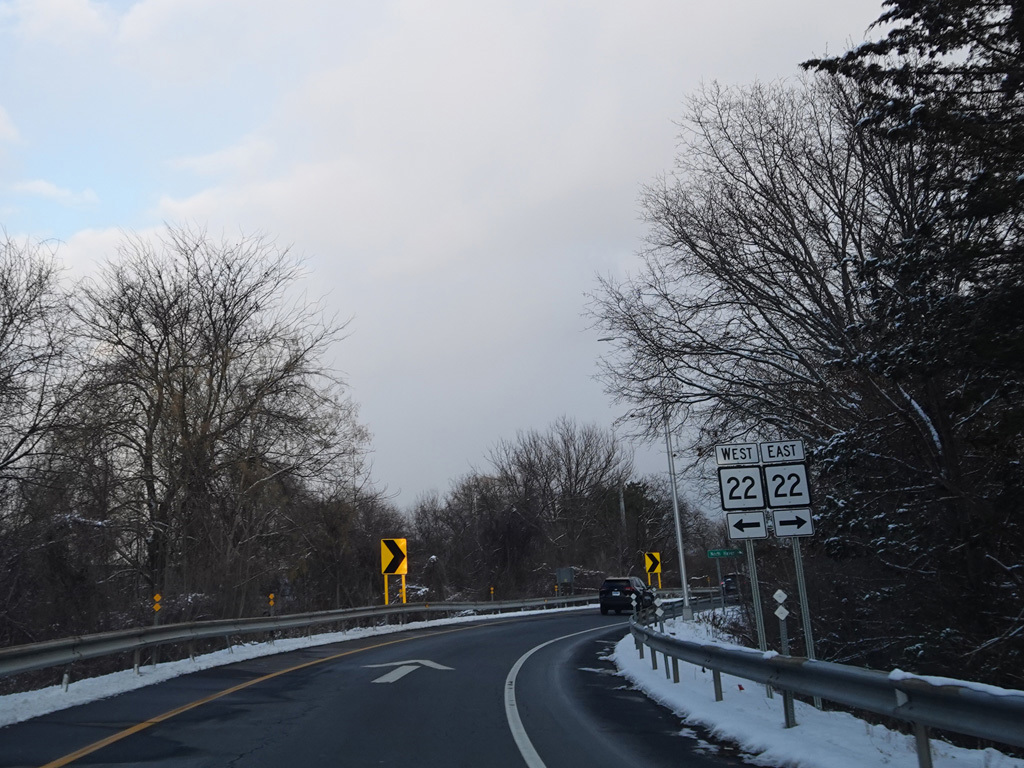 The ramp for exit 11 when travelling north splits. Bear right to go east on US 5/CT 22. The two routes are multiplexed here, but only CT 22 is indicated on the signs.