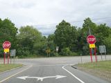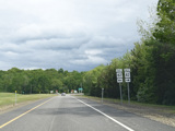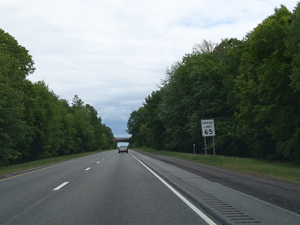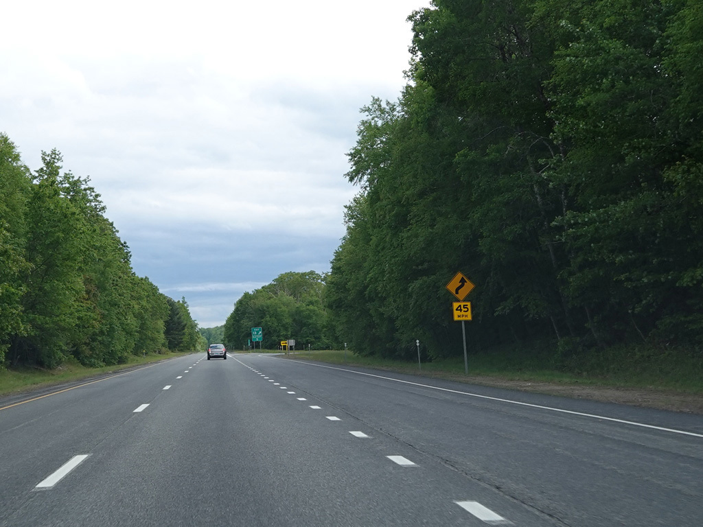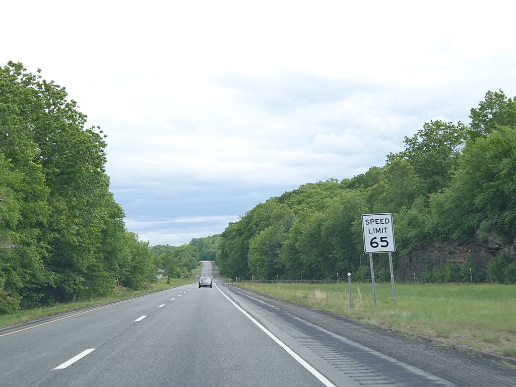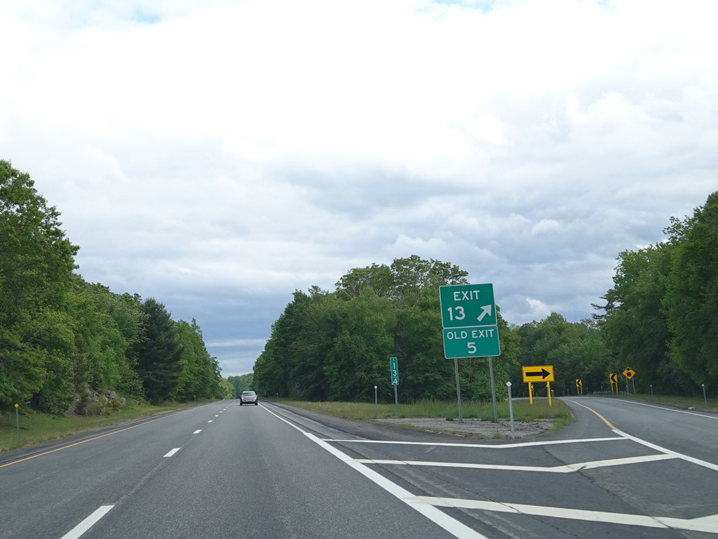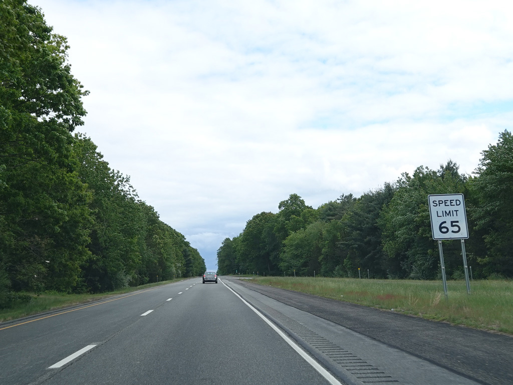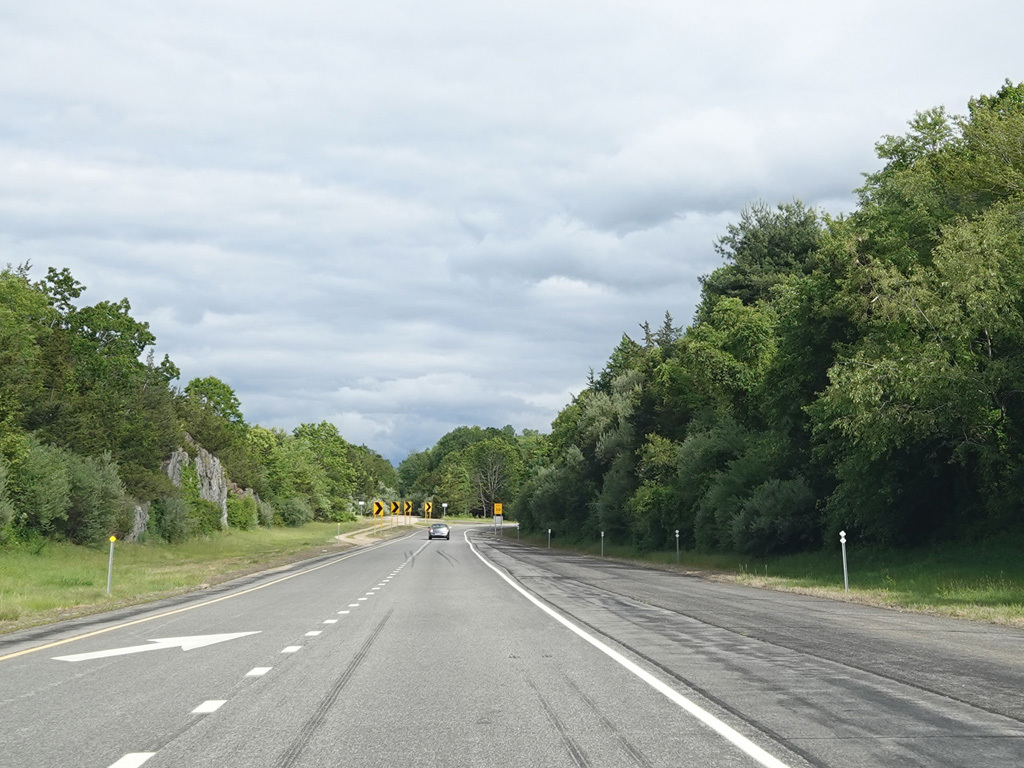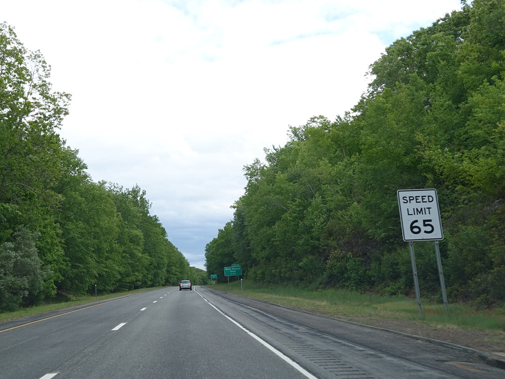 The expressway ends at a flasher and stop sign at East Haddam Road (CT 82). Turn left to go east or right to go west.
