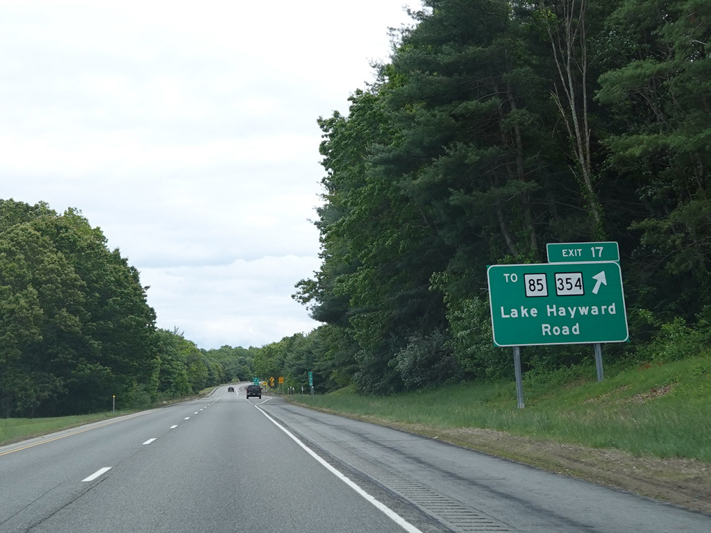 CT 11 begins at the CT 2 expressway in Colchester. Exit 17 is for New London Road (CT 85), Parum Road (CT 354), and Lake Hayward Road (SR 637).