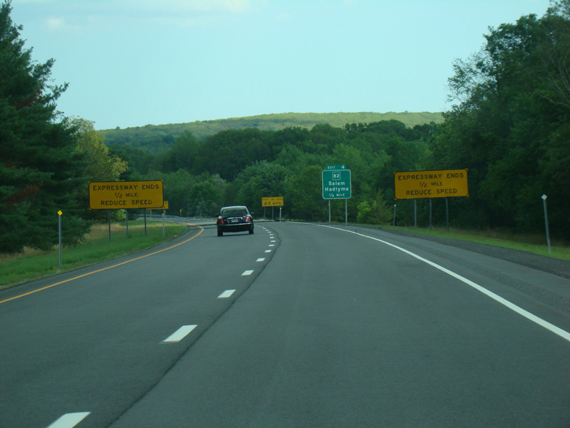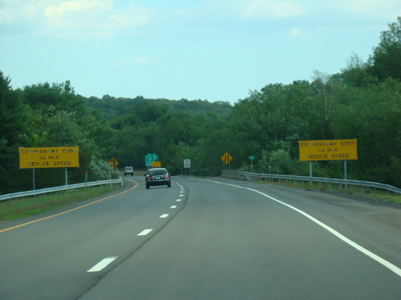 These pictures show the CT 11 expressway as it appeared prior to the conversion to milepost exit numbers. All of the signs have been replaced.