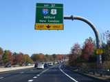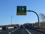 The Sikorsky Bridge carries the parkway across the Housatonic River to New Haven County. Exit 37 is for Connecticut Turnpike (I-95) and Boston Post Road (US 1). The exit leads to the Milford Parkway (SR 796), which in turn has exits for I-95 and US 1. The Merritt Parkway ends here. CT 15 continues straight ahead as the Wilbur Cross Parkway.