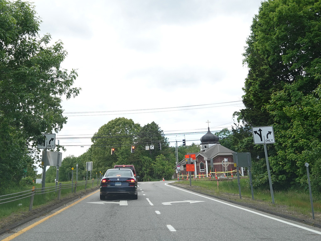 The ramp for exit 23 ends at a traffic light at Middletown Road (CT 2). Turn right to go east or left to go west.