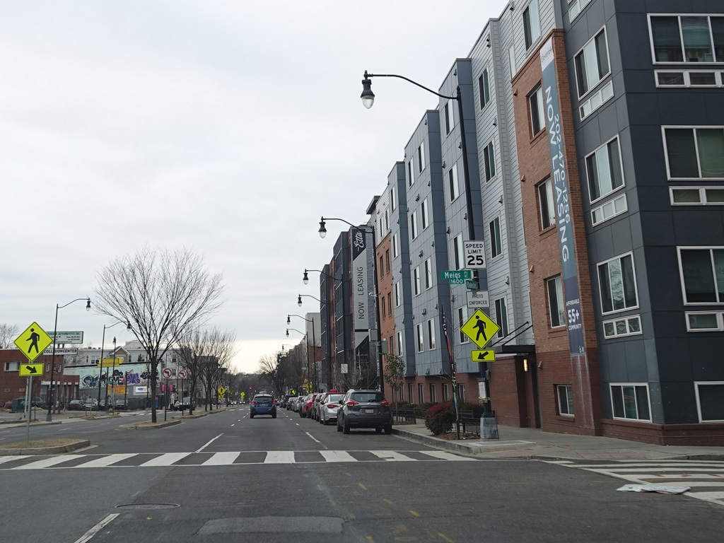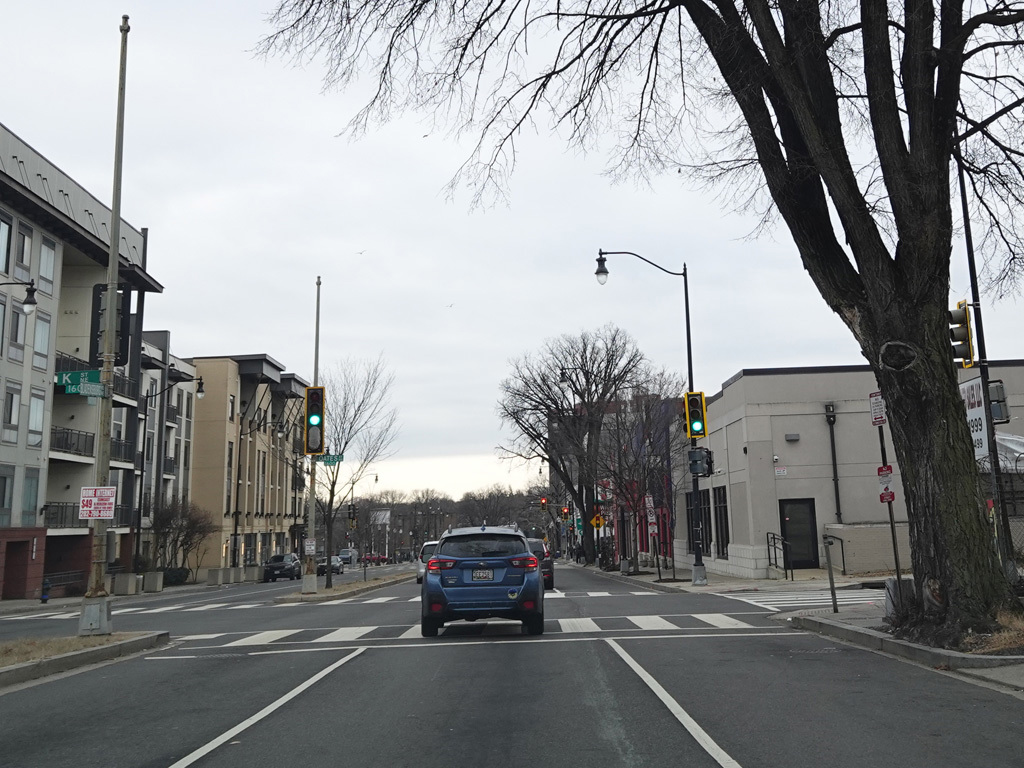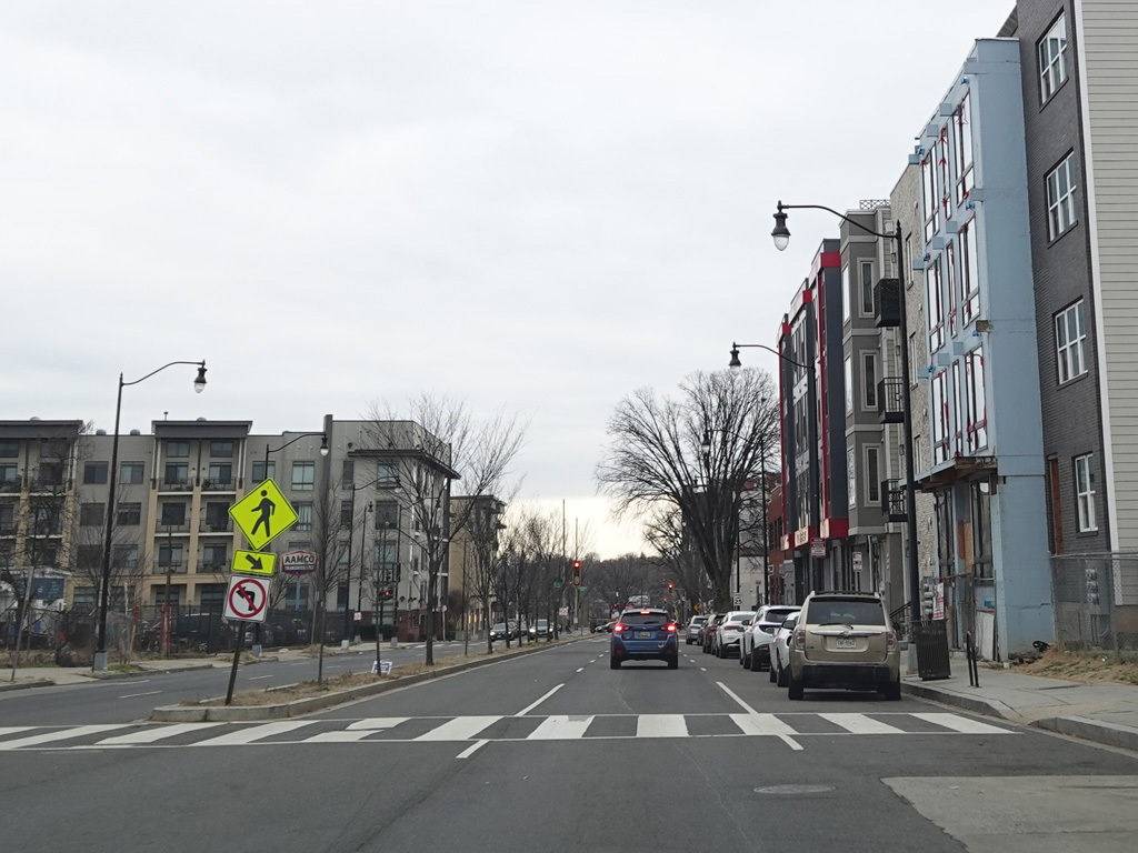 Maryland Avenue begins again after two blocks. Turn right to stay on Alternate US 1.