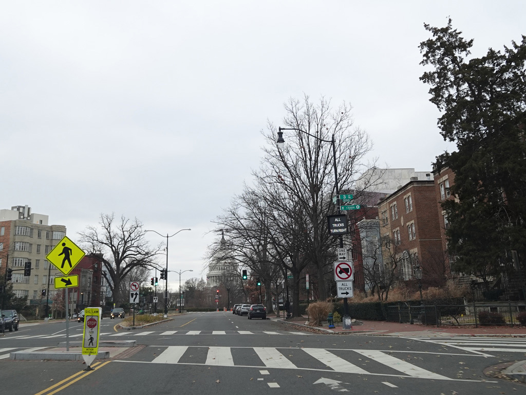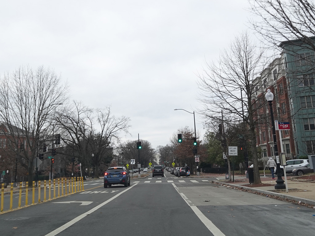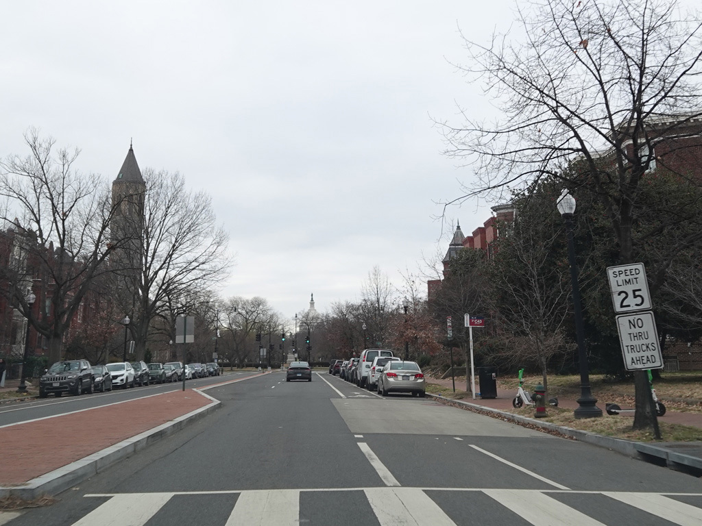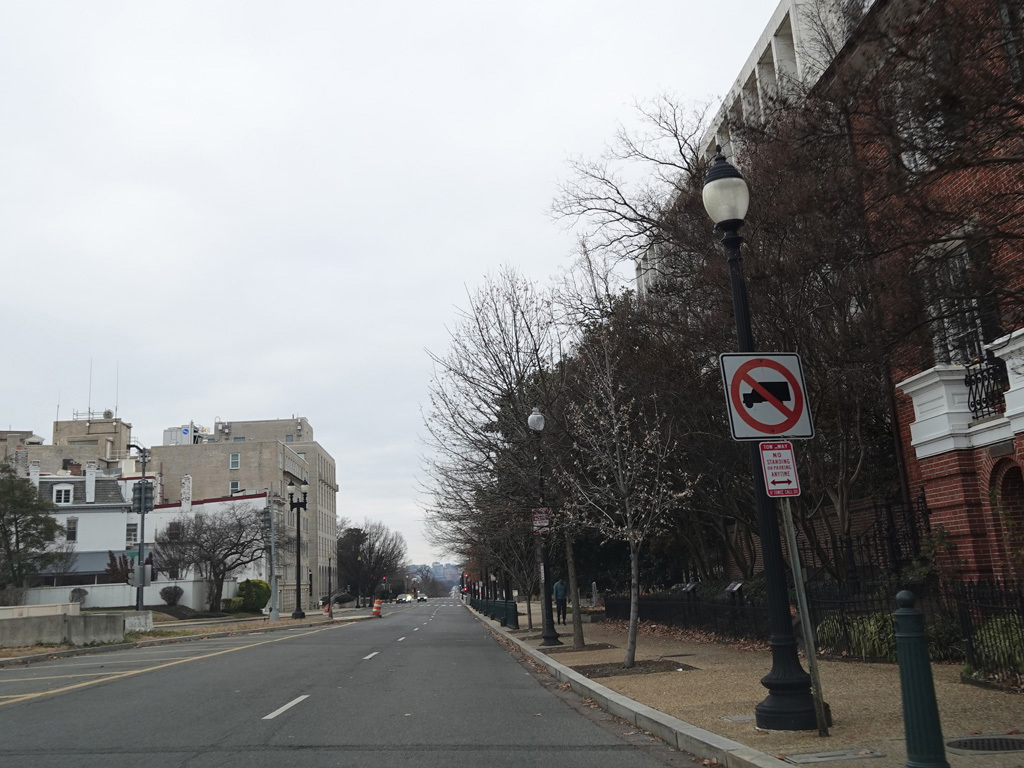 Maryland Avenue is interrupted at Stanton Park. All vehicles are forced onto C Street NE.