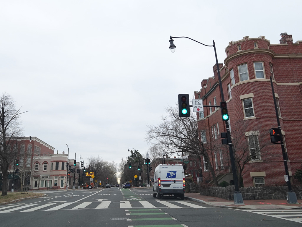 Maryland Avenue ends here at this traffic light. Continue straight ahead onto Constitution Avenue to stay on Alternate US 1.