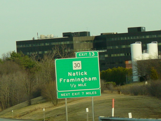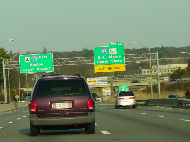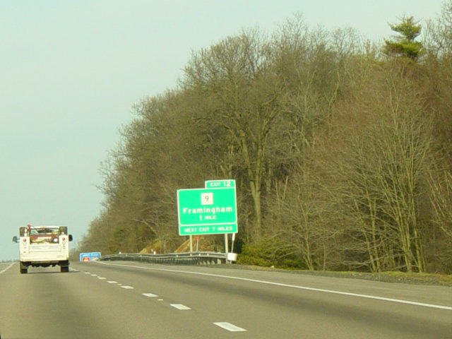 These pictures show the Massachusetts Turnpike as it appeared when it still used sequential exit numbers. It has since been converted to a milepost system. All of the signs have been replaced.