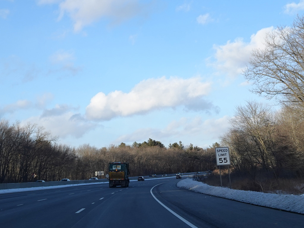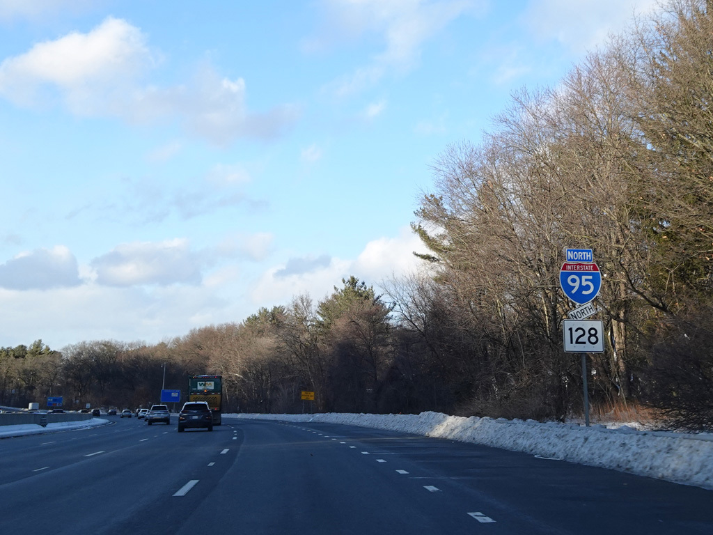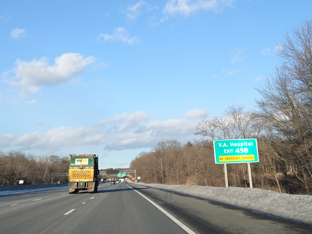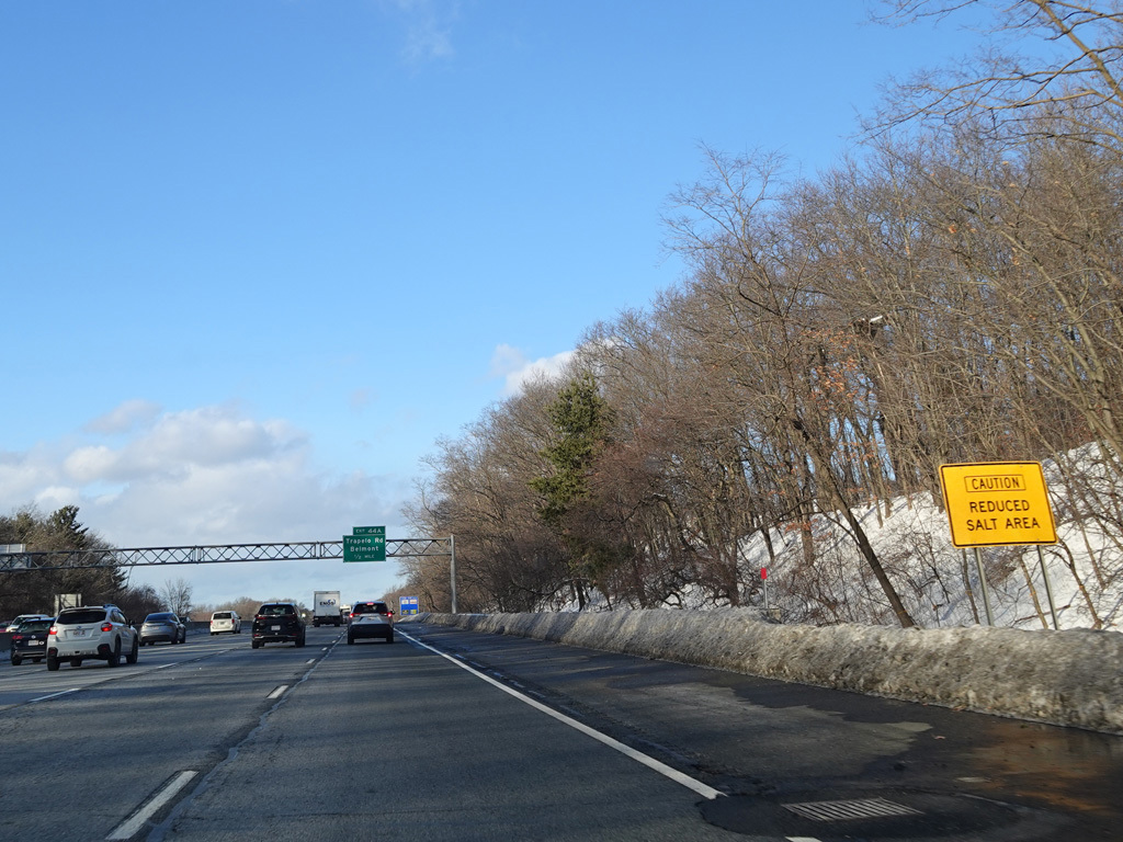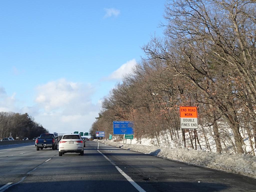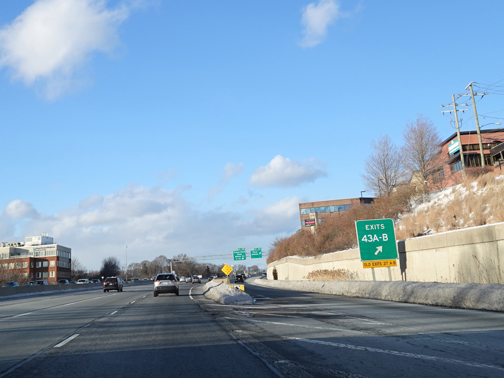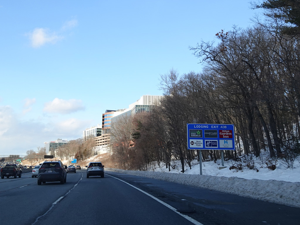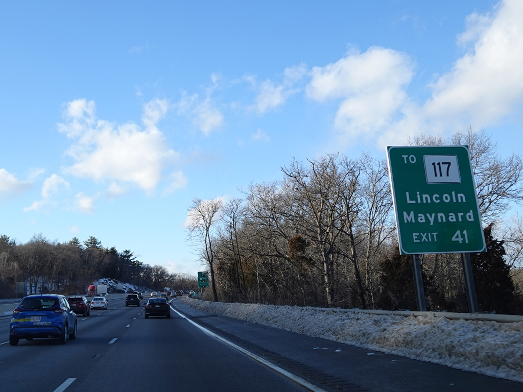 Exits 46A-B are for Marrett Road (MA 2A). The Lexington Service Plaza is also accessed through this ramp.