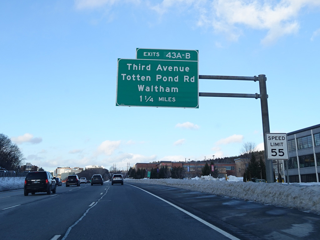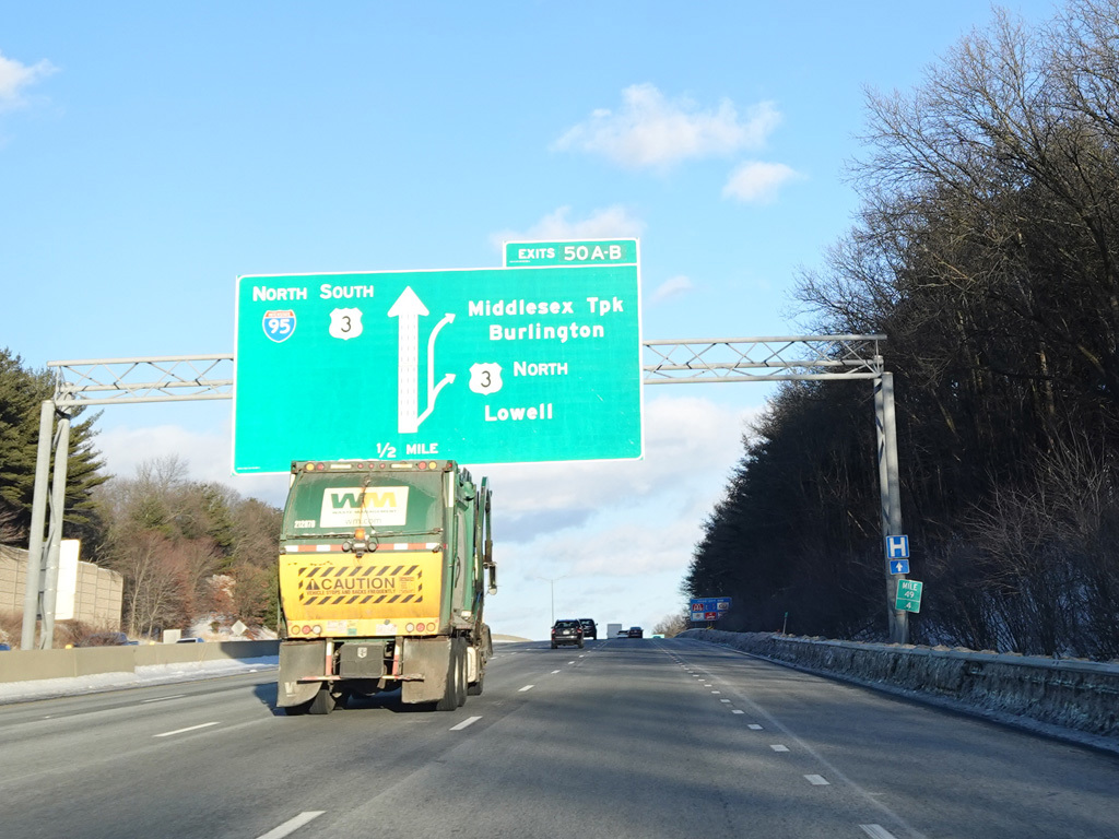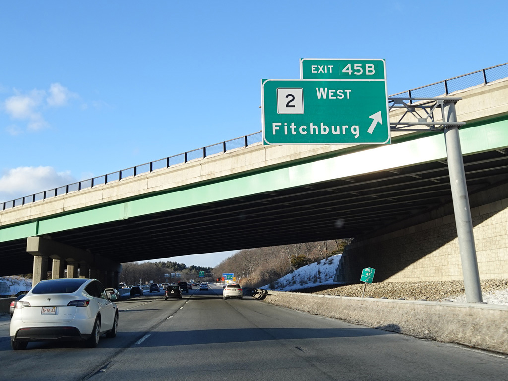 Exits 45A-B are for Concord Turnpike (MA 2).