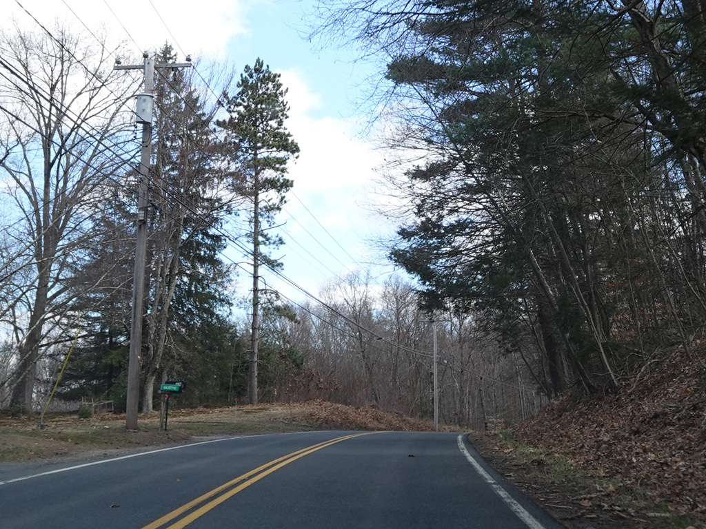 Hockanum Road continues to the north, changing names to become Lawrence Plain Road.