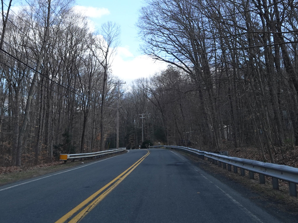 Hadley Street begins at MA 116 in South Hadley. It runs west toward the Connecticut River and then curves to the north.