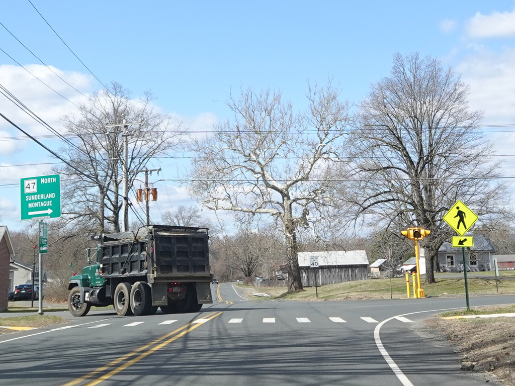 There is a traffic light at Russell Street (MA 9). Turn right to go east or left to go west.