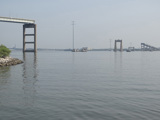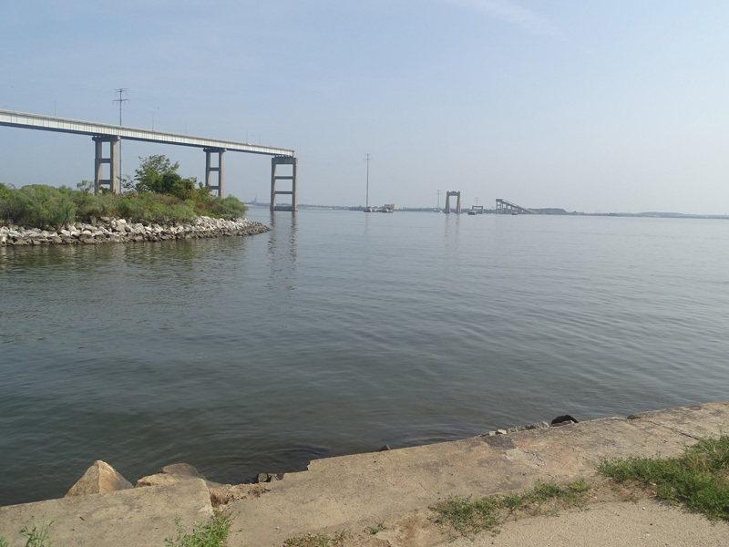 These pictures show the Francis Scott Key Bridge as it appeared after the collapse but before work began to demolish the remnants of the bridge, as observed from Fort Armistead Park.