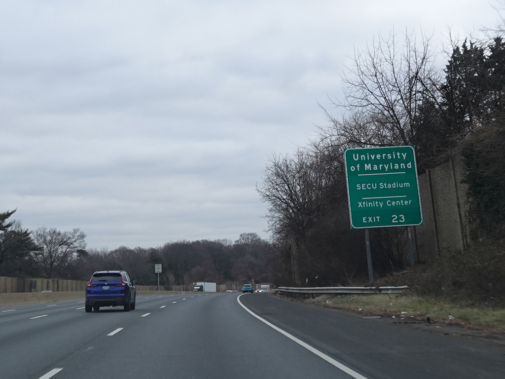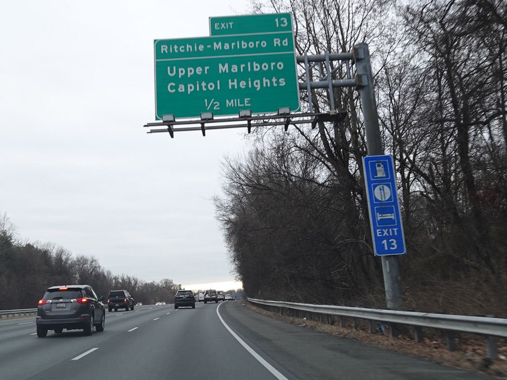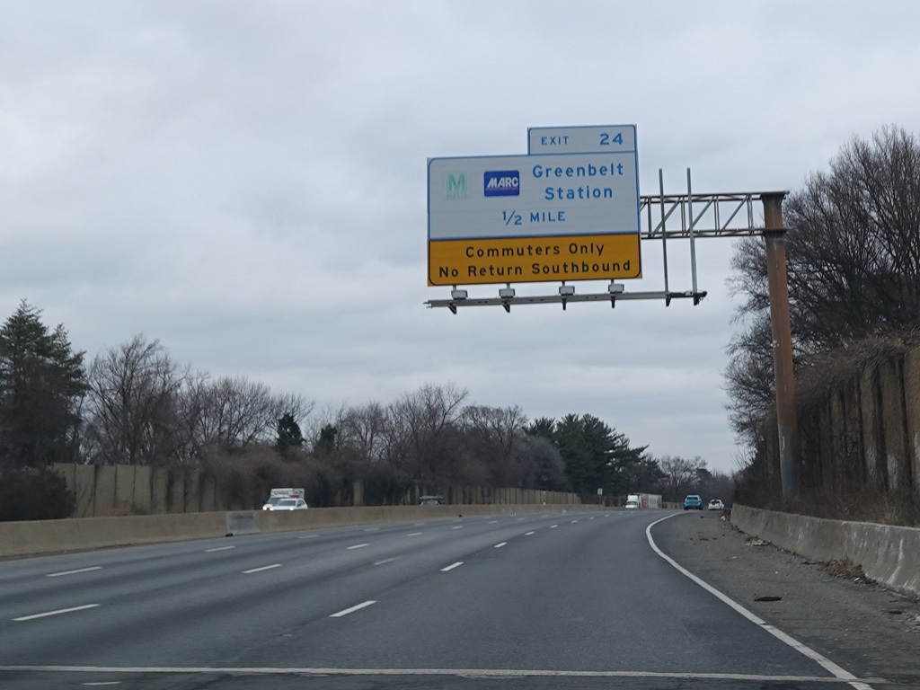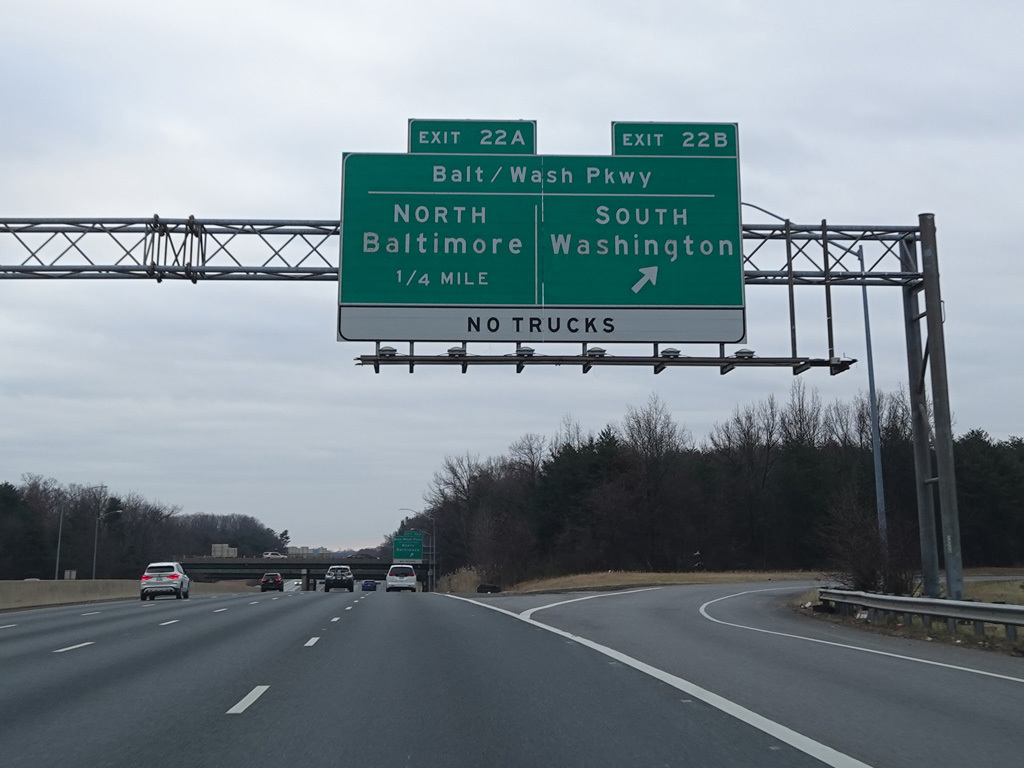 Exits 22B-A are for the Baltimore-Washington Parkway (MD 295). The route number is not posted for the portion of the parkway that is under the jurisdiction of the National Park Service.