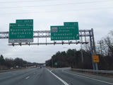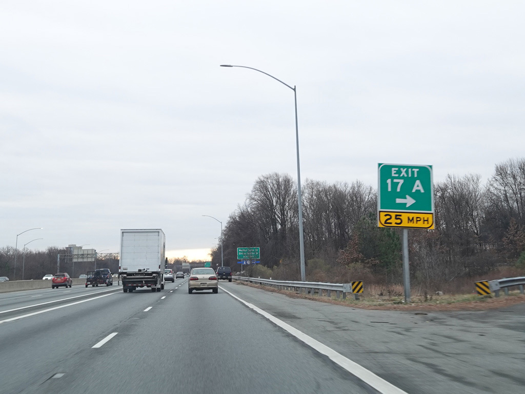 The Beltway splits into two sets of lanes. Bear right for access to exits 17-16. Through traffic may use either set of lanes.