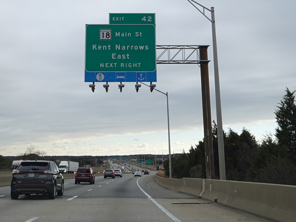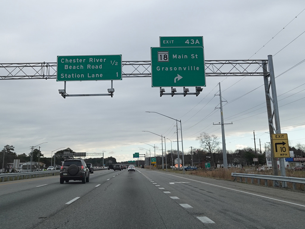 There is an exit on the right for Main Street (MD 18) west. The eastbound direction is only reachable from the westbound side of Ocean Gateway.