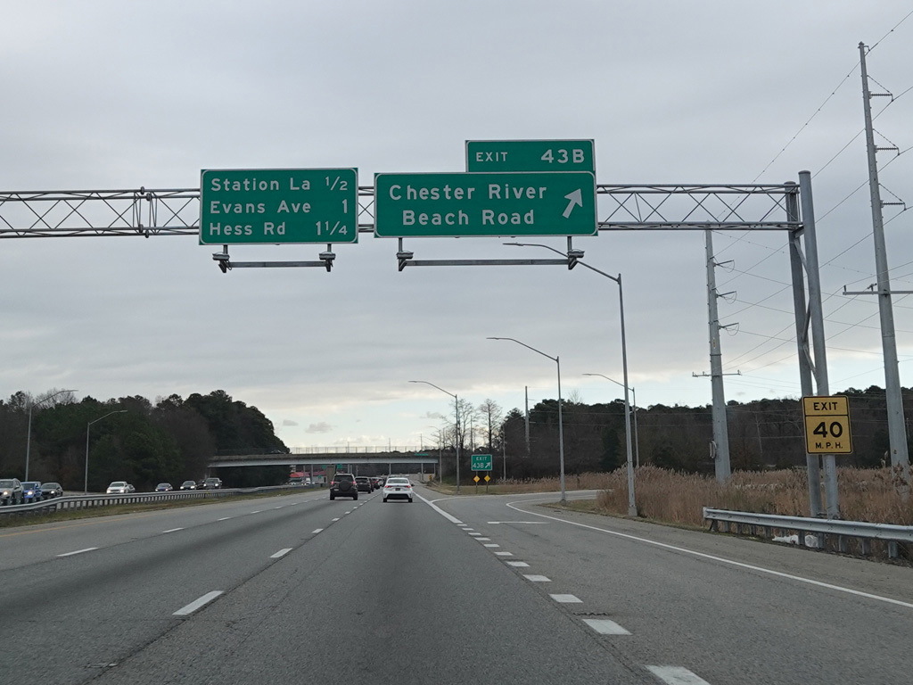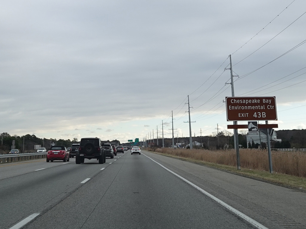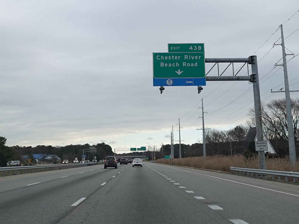 Welcome to the Eastern Shore! There is a cashless tolling gantry on the other side of the bridge. Exit 37 is for Business Parkway (MD 8).