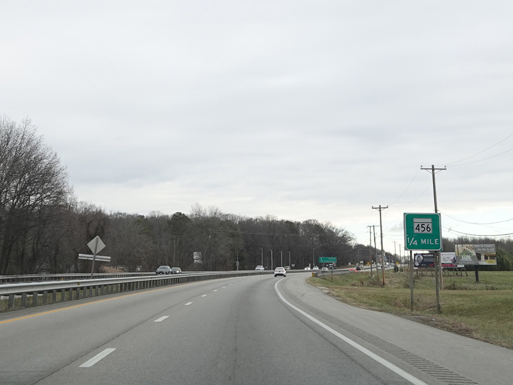 Del Rhodes Avenue (MD 456) begins on the left at an uncontrolled intersection.