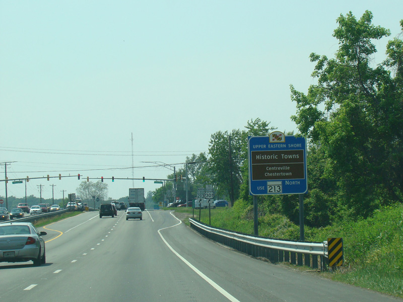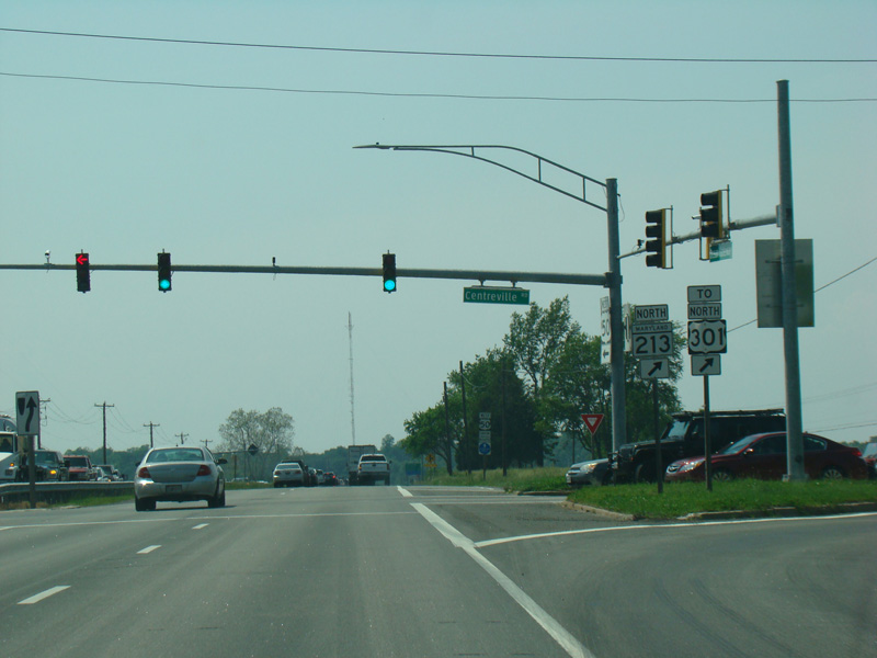 There is a traffic light at Centreville Road (MD 213). Turn right to go north or left to go south.