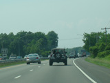 The Bay Bridge carries US 50/US 301 across Chesapeake Bay. It is in part a truss bridge and in part a suspension bridge. The westbound span has a reversible lane that can carry eastbound traffic during the evening rush hour, as was the case when these pictures were taken.