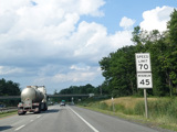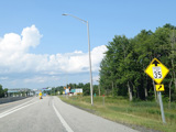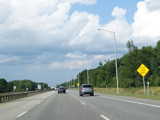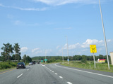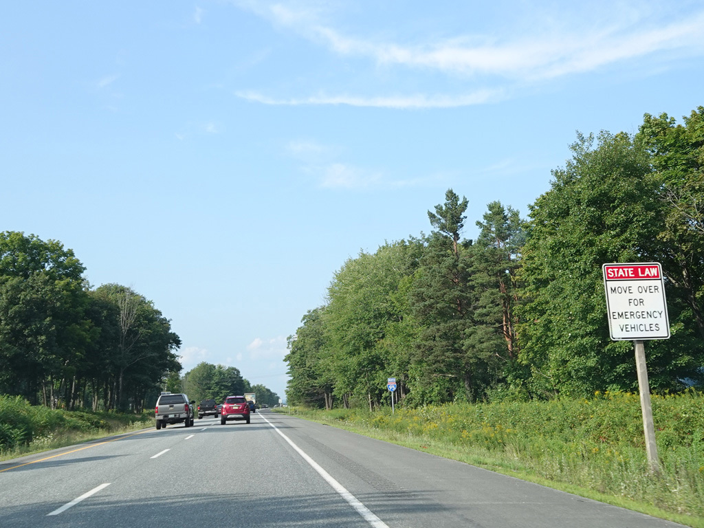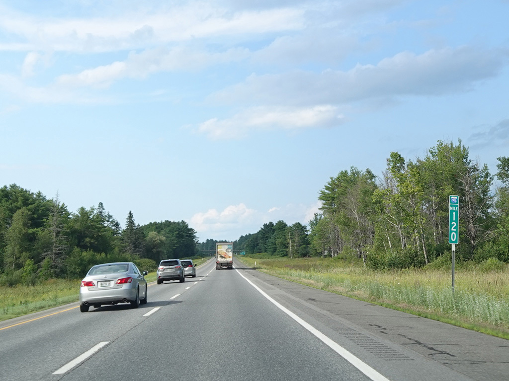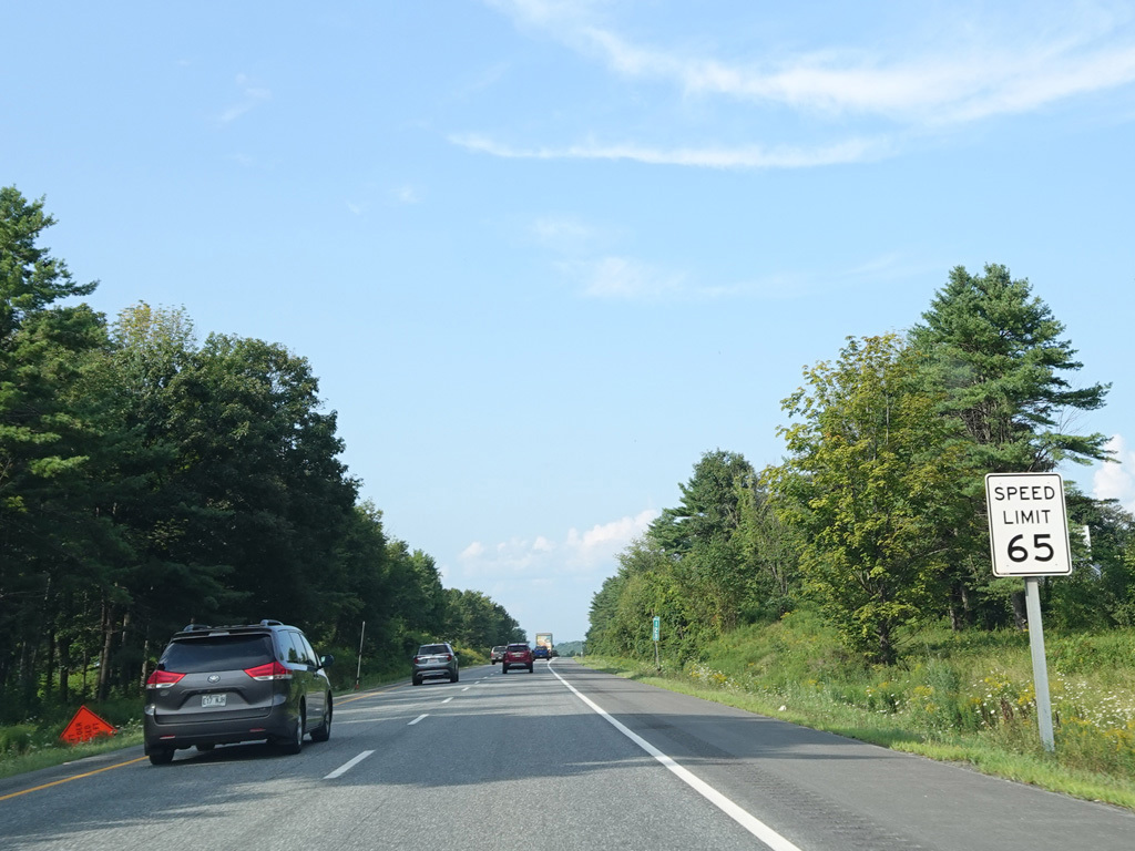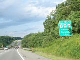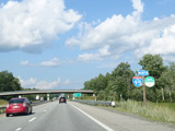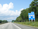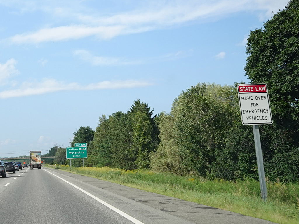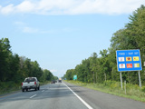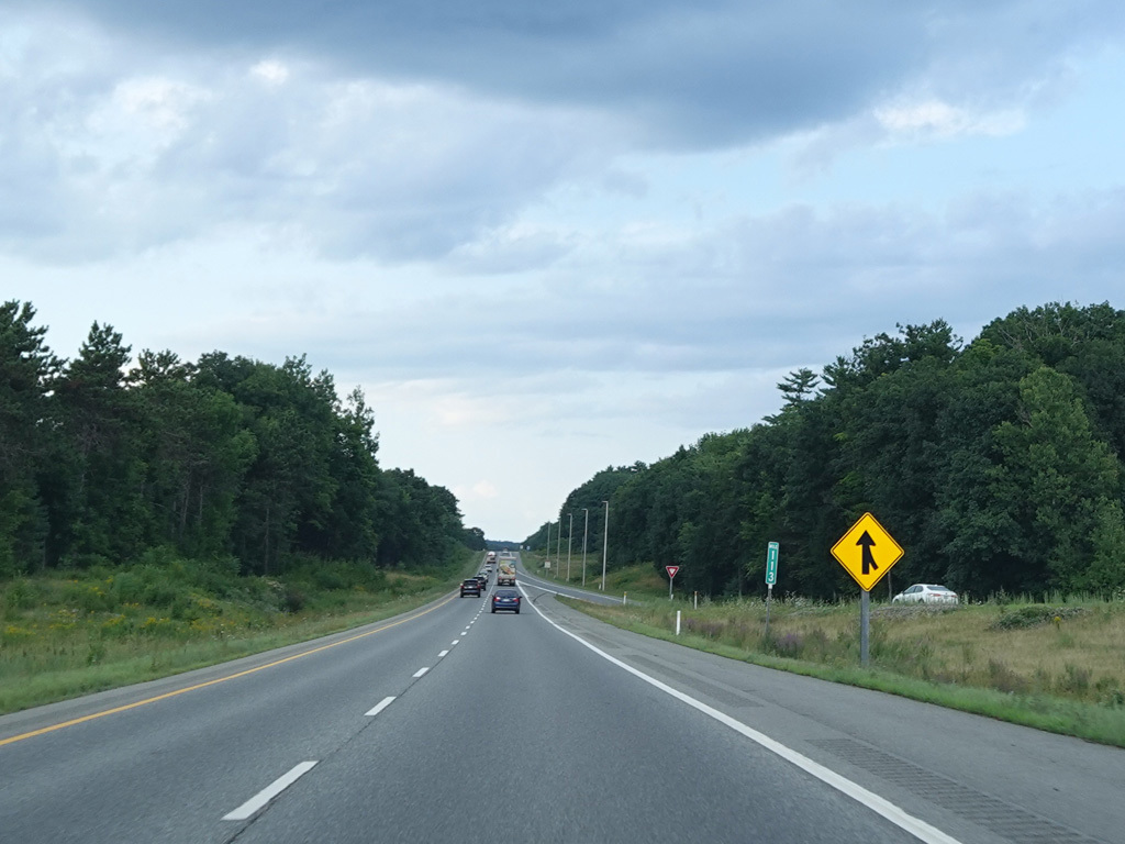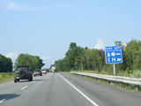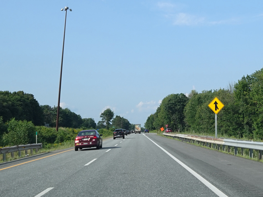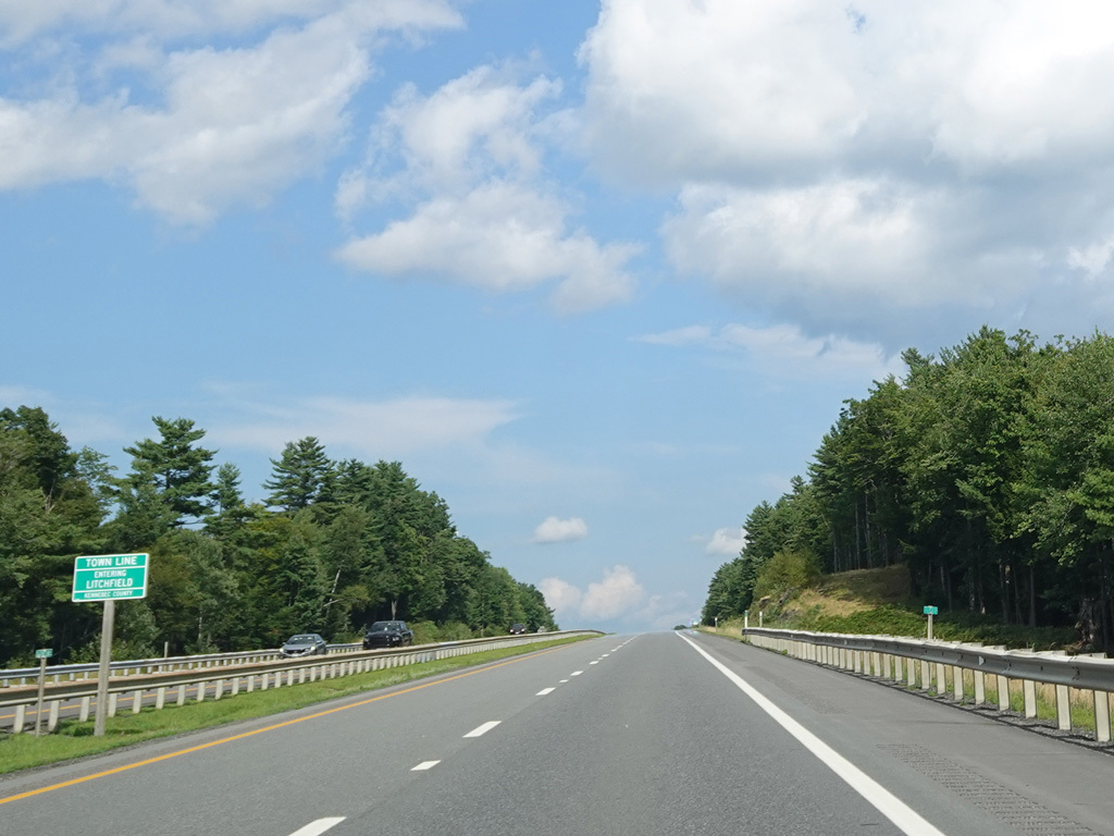 Exit 109 is for Western Avenue (US 202/ME 11/ME 17/ME 100). The Maine Turnpike ends at this point. I-95 continues straight ahead as a free highway from here to the Canadian border.