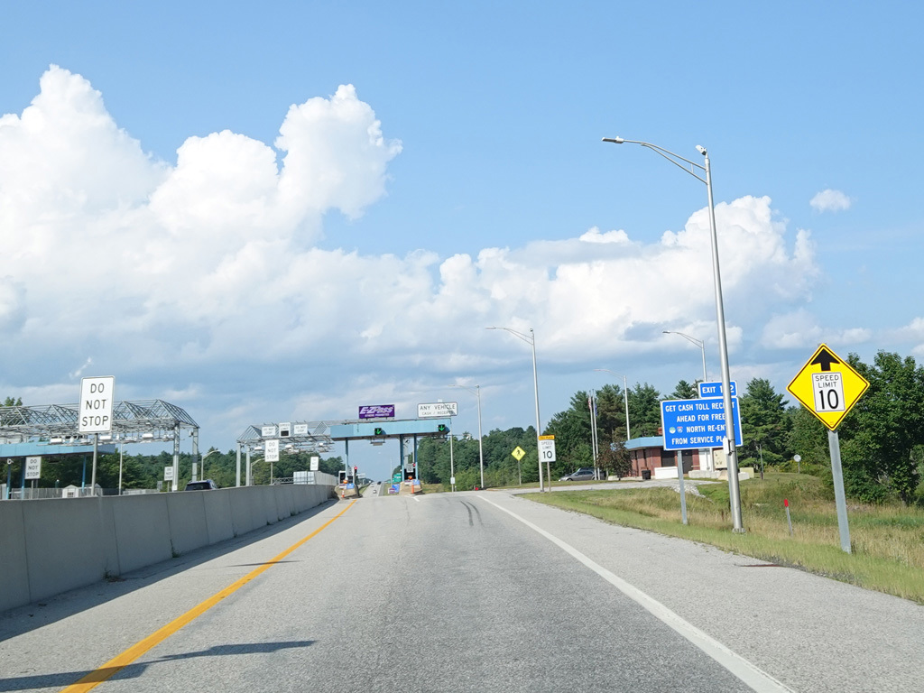 There is a toll plaza before exit 102. Motorists without E-ZPass who wish to use the service plaza at exit 102 should save their receipts in order to get back on the turnpike without paying another toll.