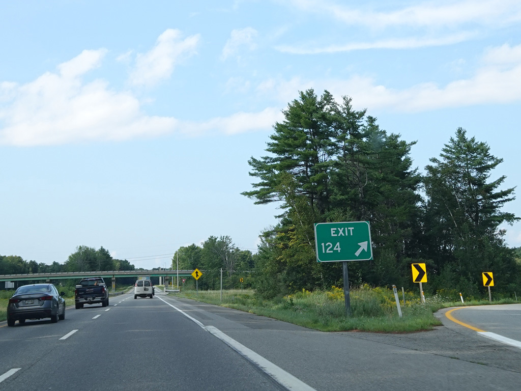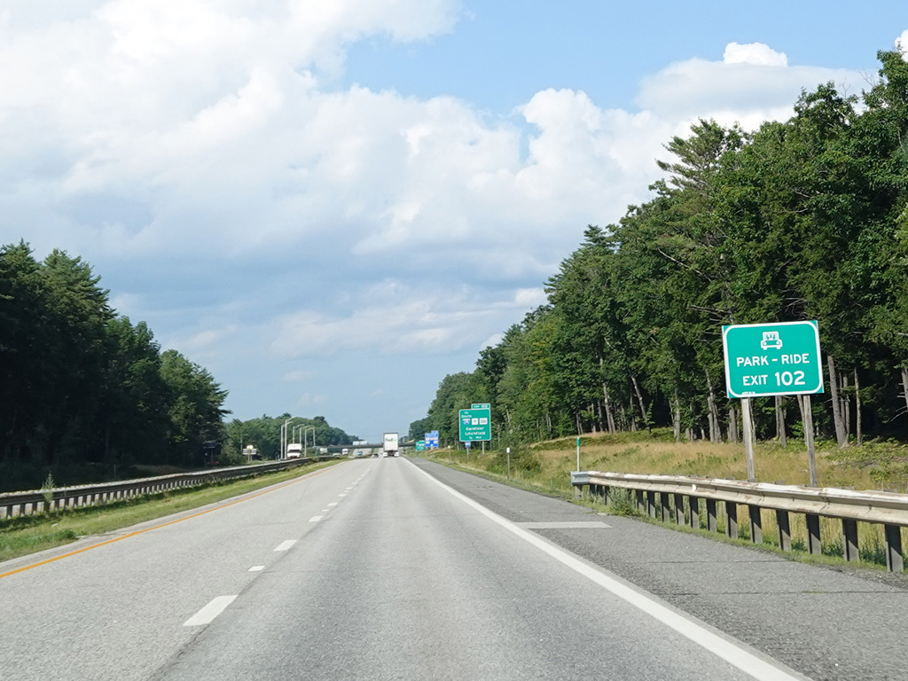 Exit 102 is for I-295 south and Lewiston Road (ME 9/ME 126). The West Gardiner Service Plaza is at this exit.