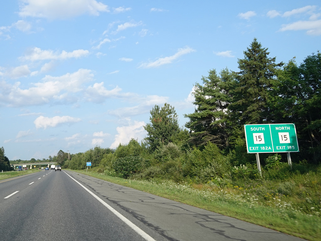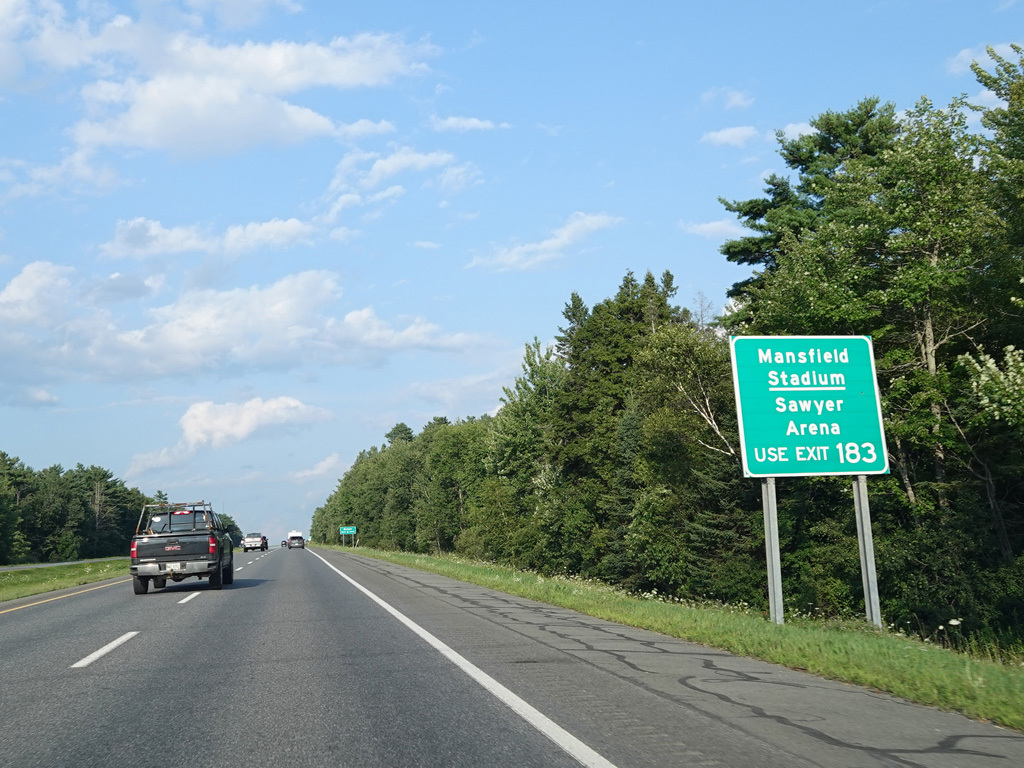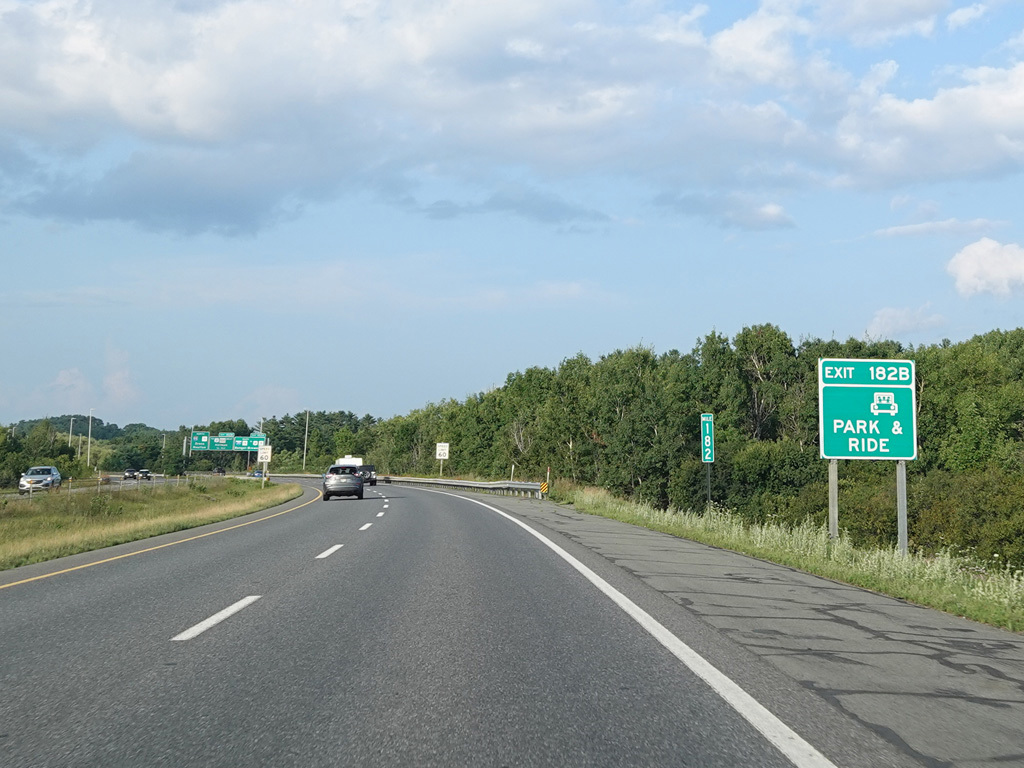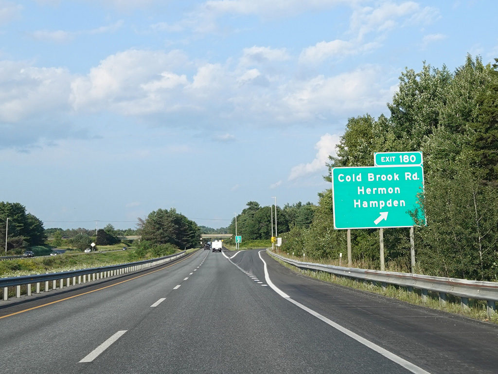 Exit 182A is for I-395, which provides access to Main Road (US 1A) and ME 9. Exit 182B is for Hammond Street (US 2/ME 100). ME 15 also passes through this interchange, following I-95 to the north and I-395 to the south.