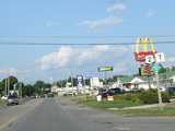 There is a traffic light at Main Street (US 2). Turn right to go east or left to go west. Continue straight to stay on ME 11. ME 100 splits off to the right. ME 7 also passes through this intersection. Continue straight ahead to go north, or turn left to go south.