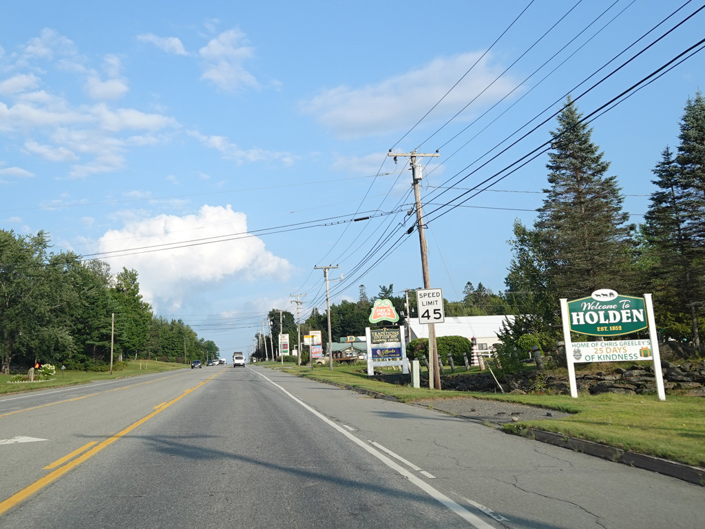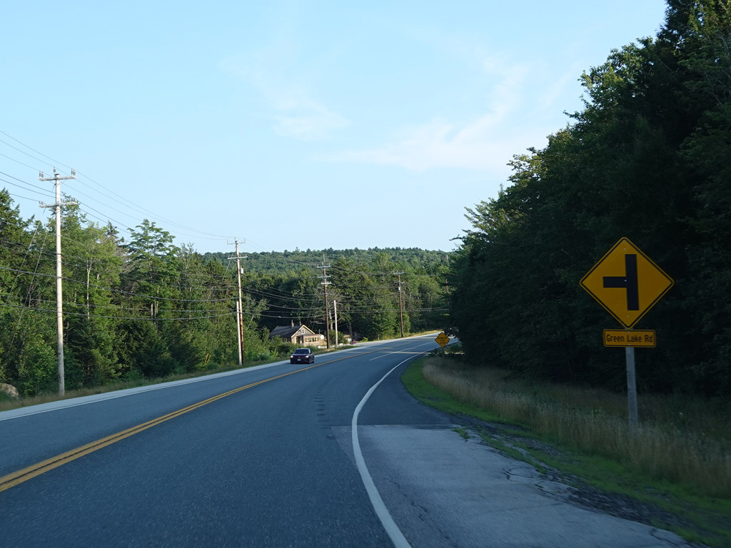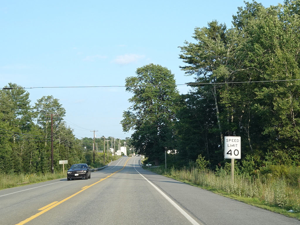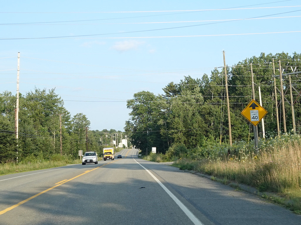 Coming into Ellsworth, the speed limit drops to 40 MPH. Mariaville Road (ME 180) begins on the left at an uncontrolled intersection.