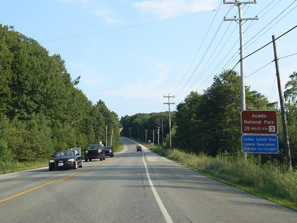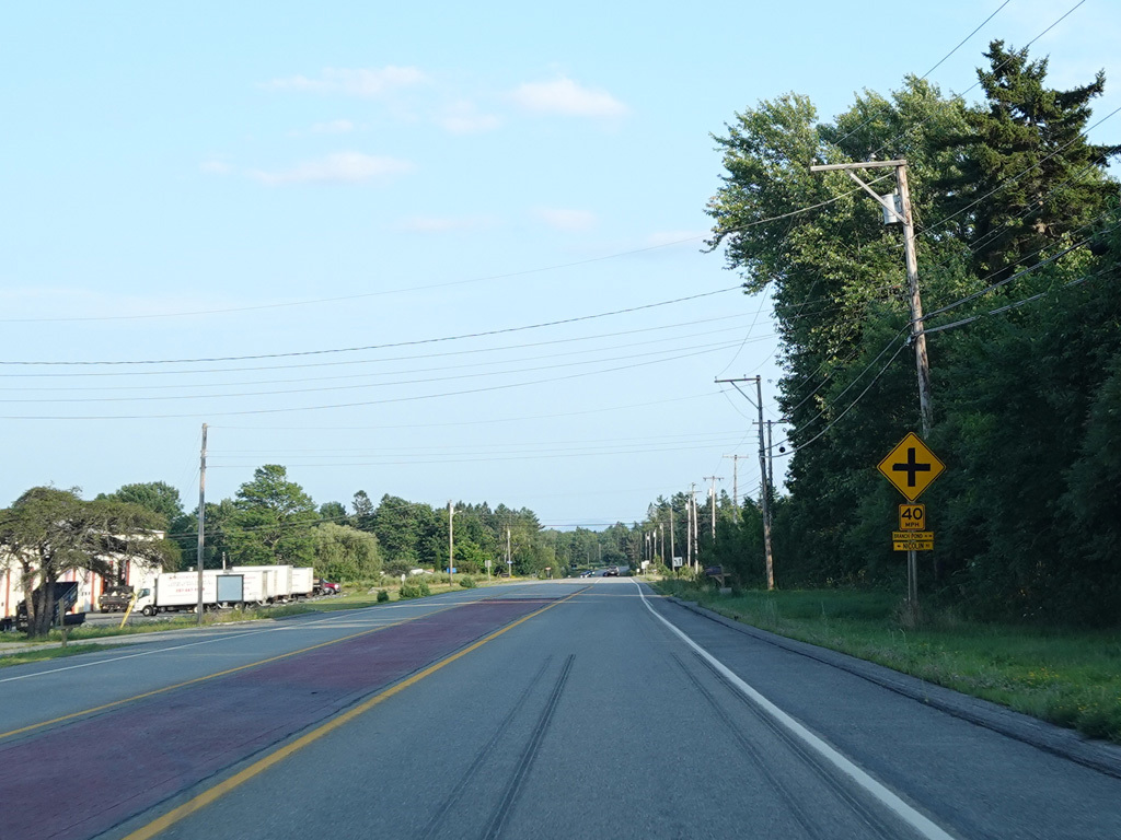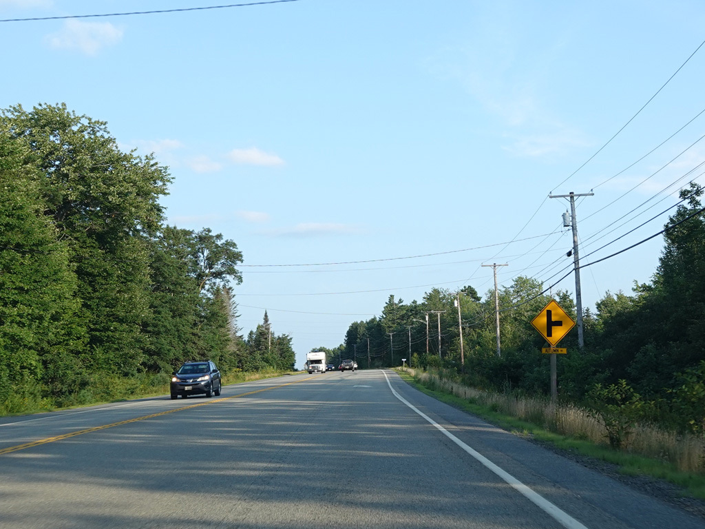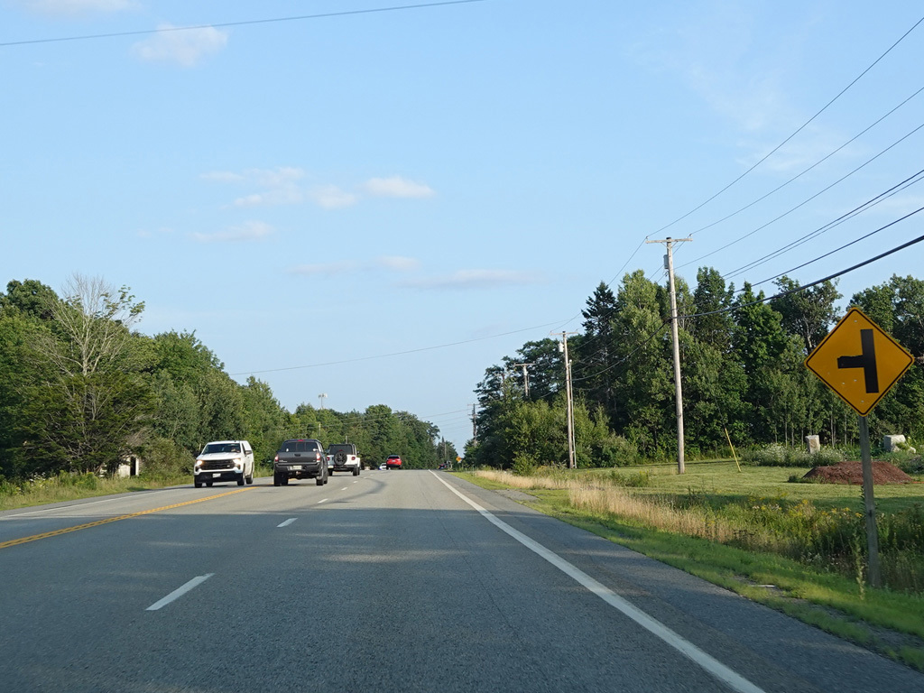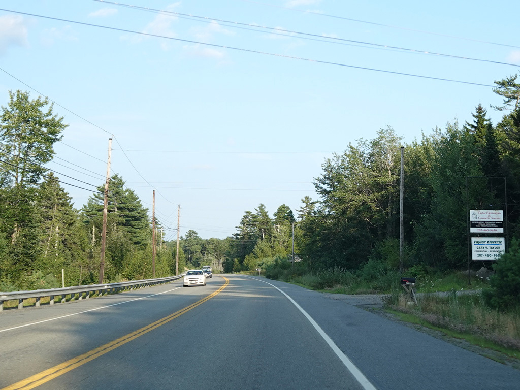 Coming into Ellsworth, the speed limit drops to 40 MPH. Mariaville Road (ME 180) begins on the left at an uncontrolled intersection.