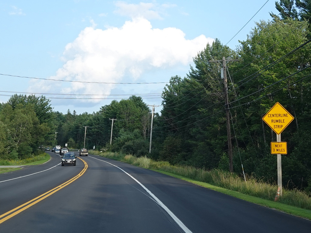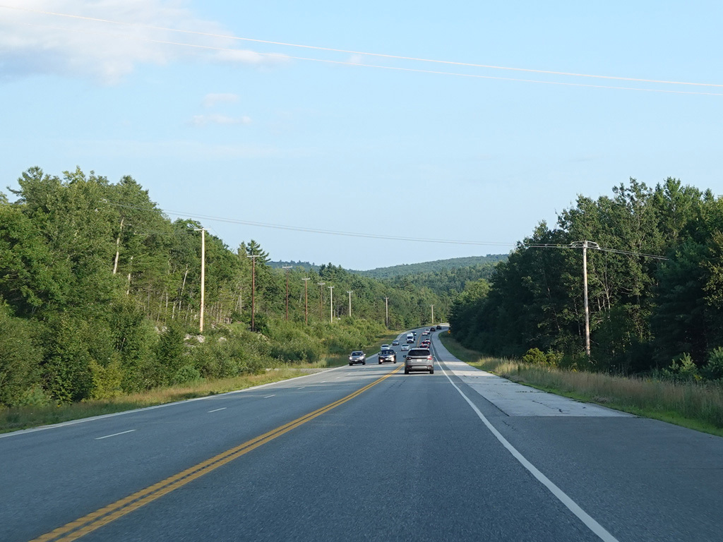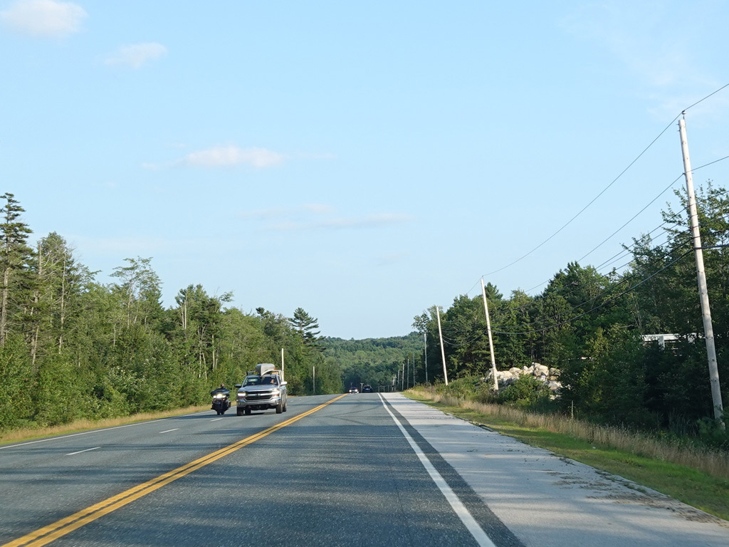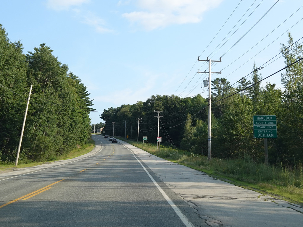 There are a few additional stretches with climbing lanes. Main Road changes names to become Bangor Road upon leaving Dedham.