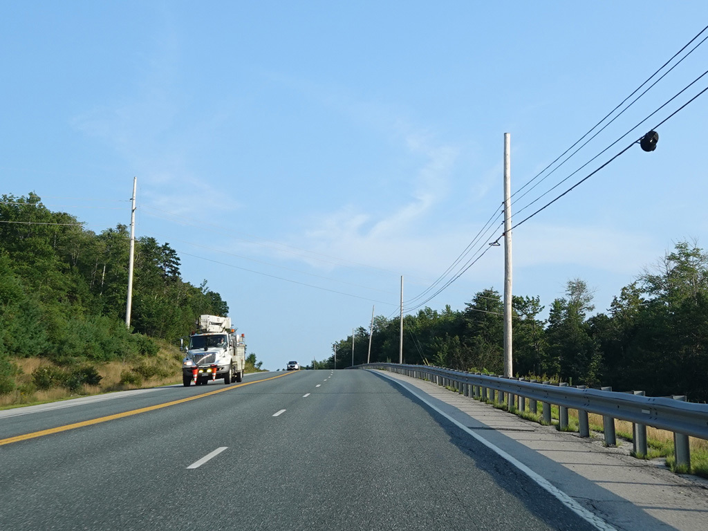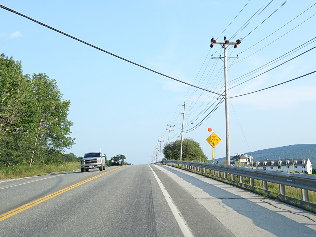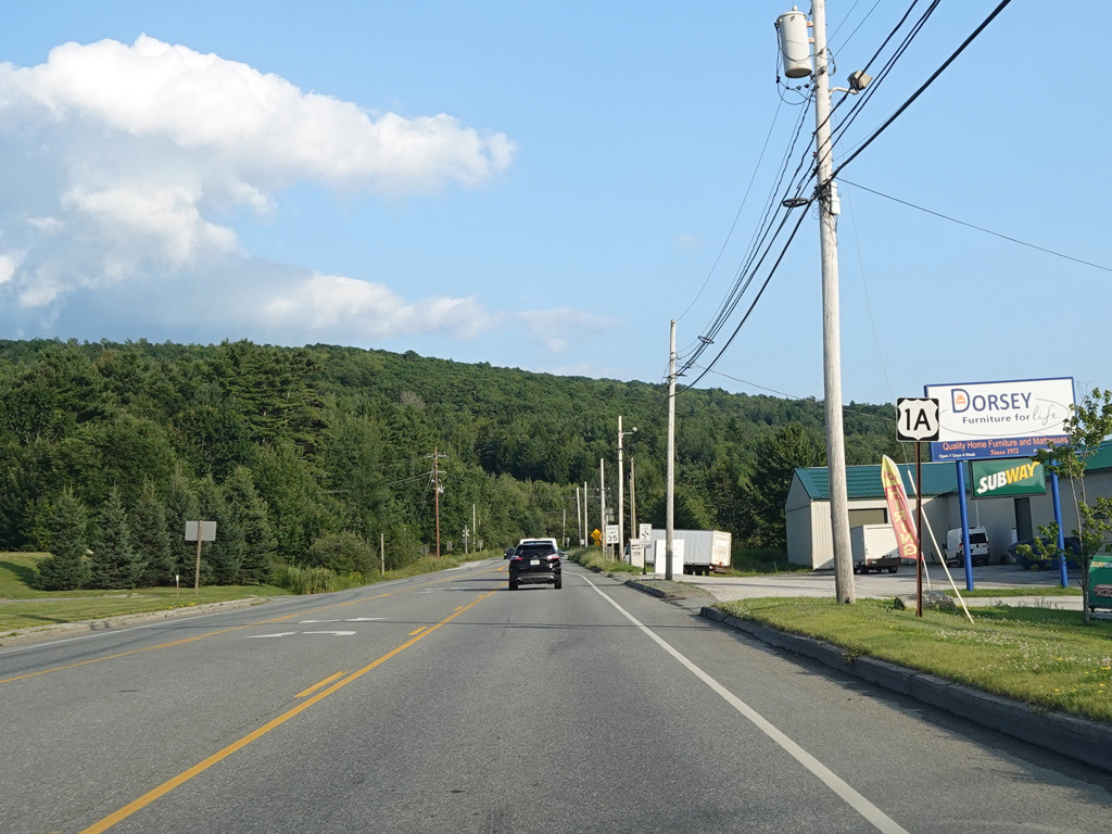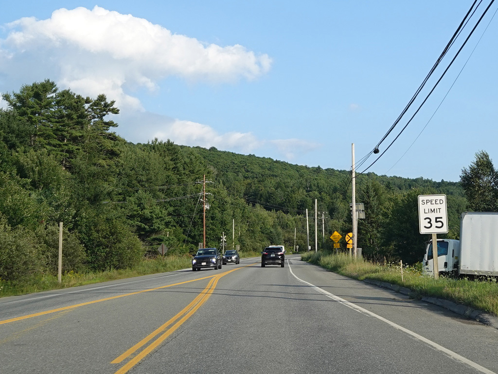 There are a few additional stretches with climbing lanes. Main Road changes names to become Bangor Road upon leaving Dedham.