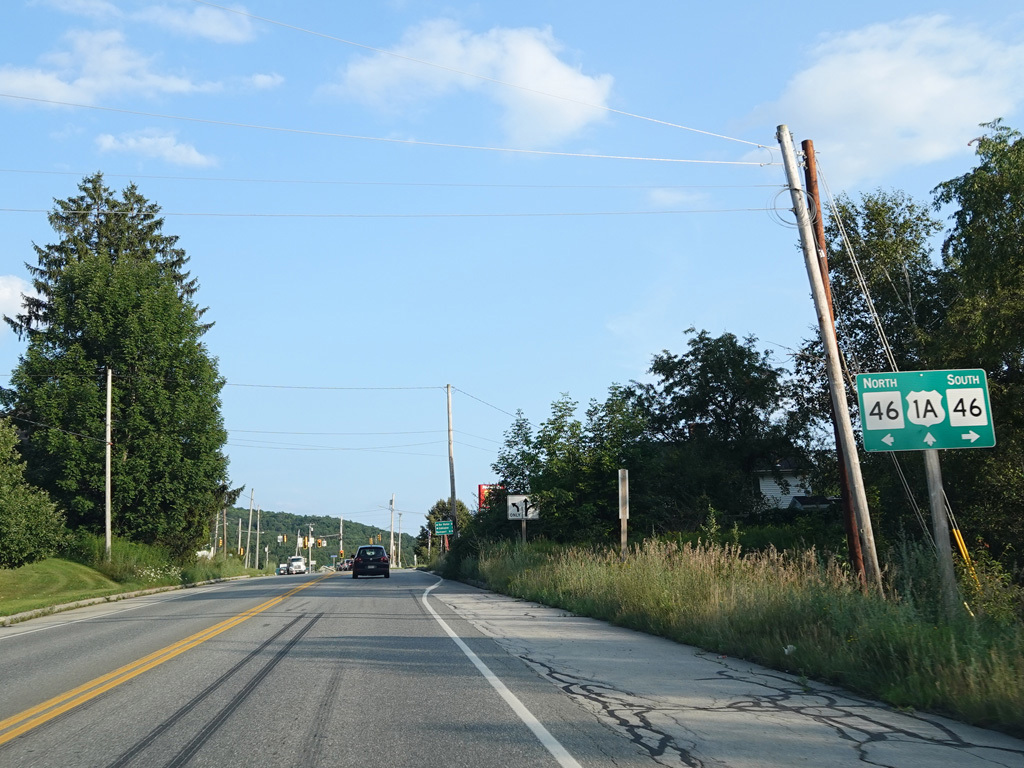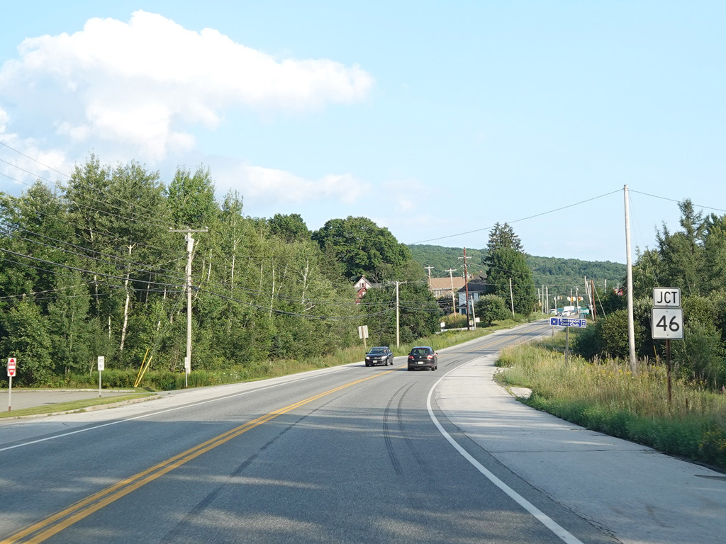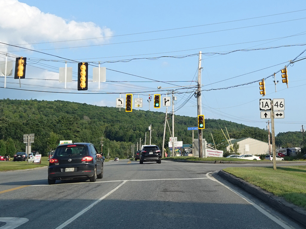 The speed limit drops to 35 MPH. There is a traffic light at ME 46. Turn left onto Kidder Hill Road to go north or right onto Lower Dedham Road to go south.