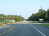 There is a railroad crossing, and then the speed limit goes back up to 45 MPH.