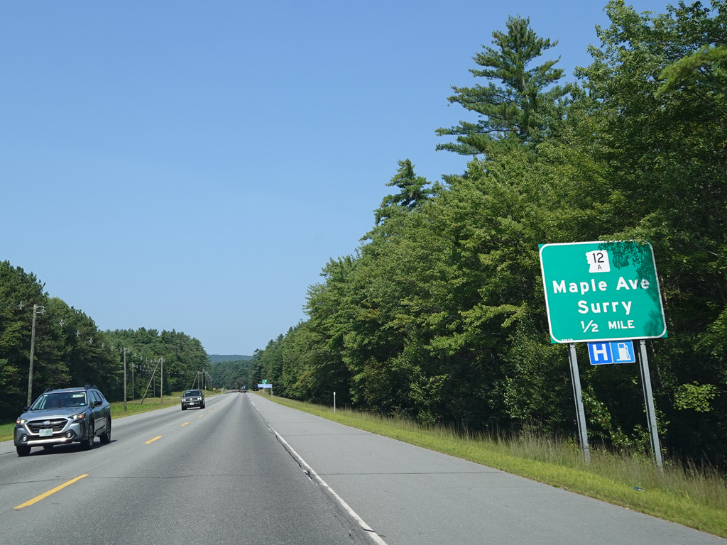 The super-2 ends, and NH 12 continues northwest as a surface road. There is an uncontrolled intersection at Corporate Drive and Wyman Road.