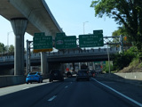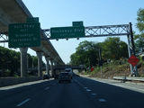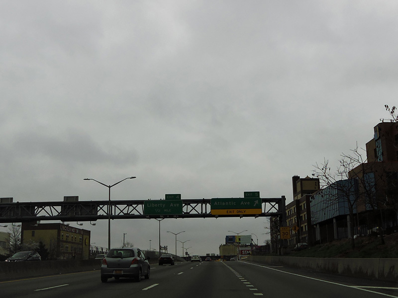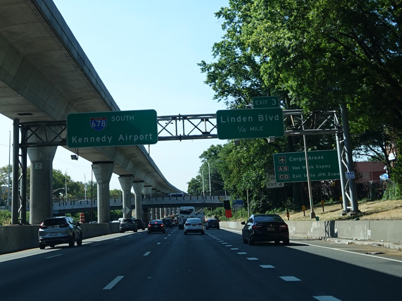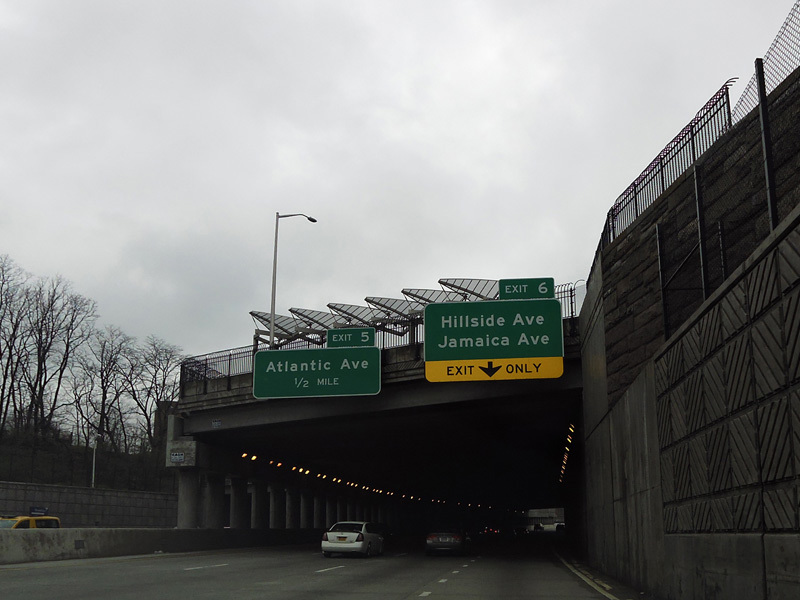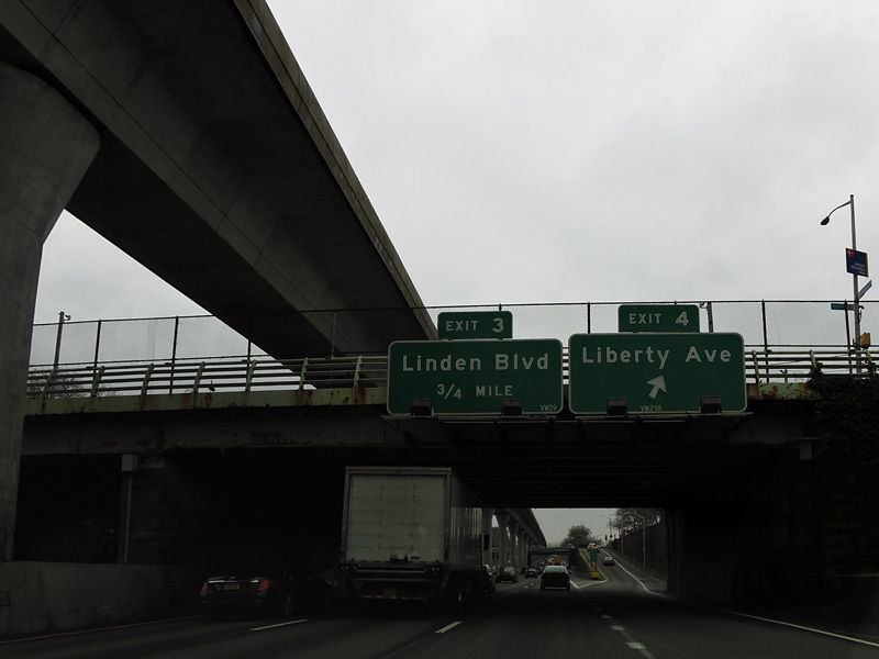 These pictures show the Van Wyck Expressway southbound at exits 5-3 as it appeared before construction work began to add an HOV lane to this section. Exit 5 has been eliminated, and Atlantic Avenue is now accessed through exit 6.