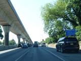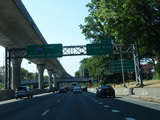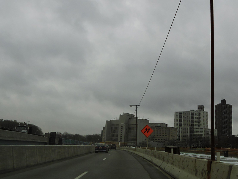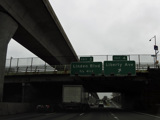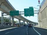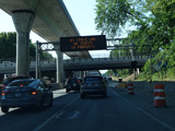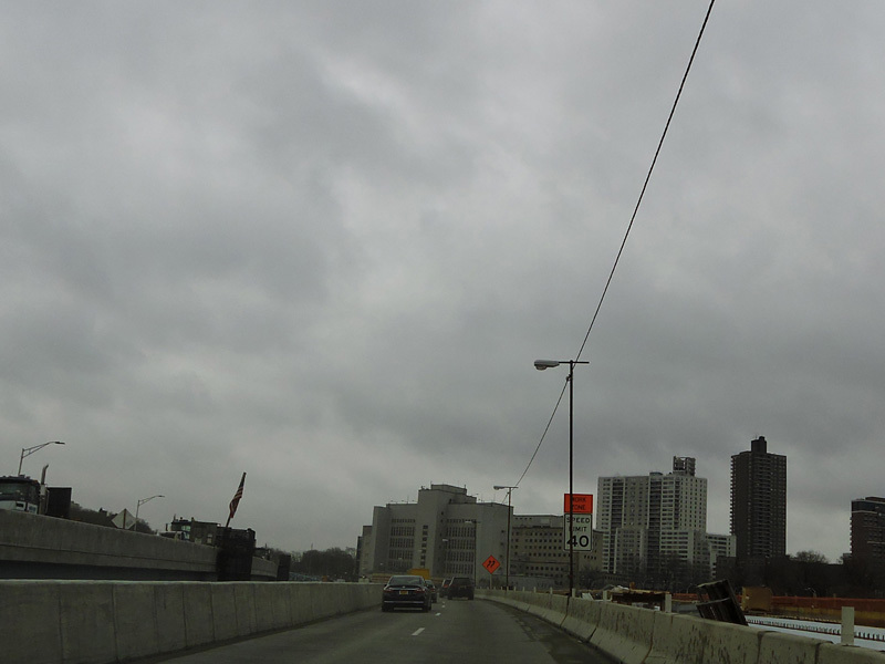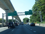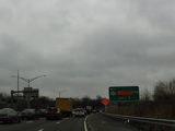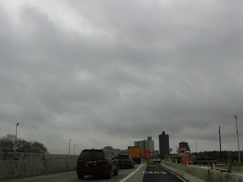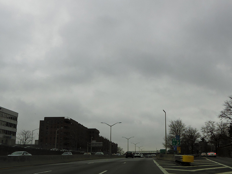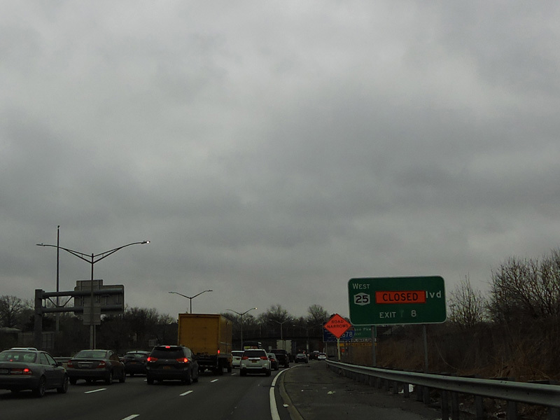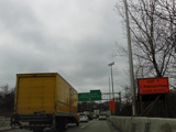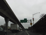 This photograph shows the approach to the Whitestone Bridge after the signage for exit 18 was replaced but before the toll lanes were reconfigured.
