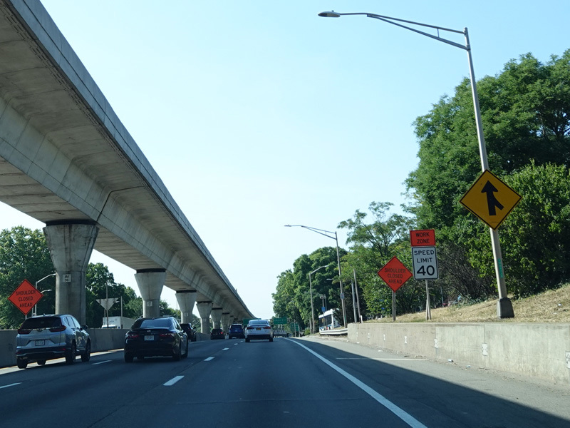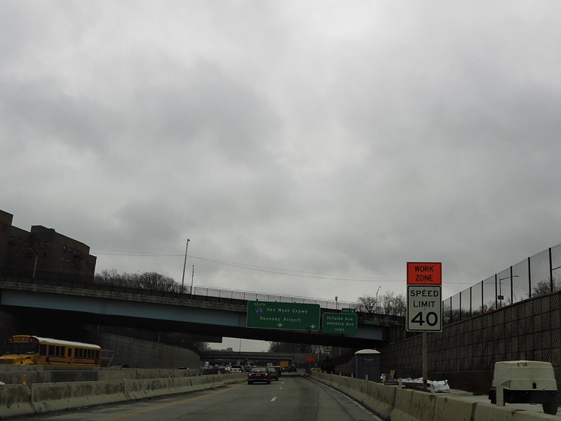 These pictures show the Van Wyck Expressway southbound at exits 4-1 as it appeared during an early stage of the construction to add an HOV lane.