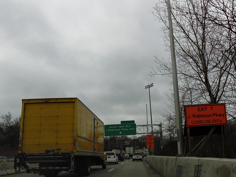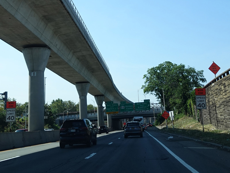These pictures show the Van Wyck Expressway southbound at exits 6-7 as it appeared while construction work was in progress to rebuild the Kew Gardens Interchange.