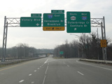 Straight ahead, the Outerbridge Crossing crosses the Arthur Kill to New Jersey. At the state line, NY 440 becomes NJ 440.