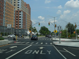 Vehicles that do not exit are routed along a one-lane ramp that ends at a traffic light. Turn left for East Tremont Avenue. Continue straight ahead for East 177 Street, which provides access to the Cross Bronx Expressway (I-95) north and the Bronx Parkway.