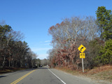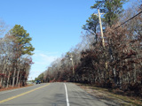The median ends, and Quogue-Riverhead Road narrows back down to two lanes.