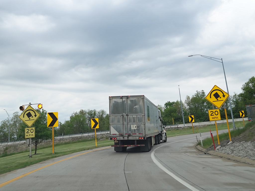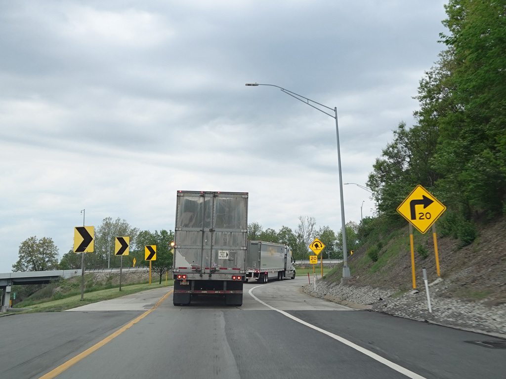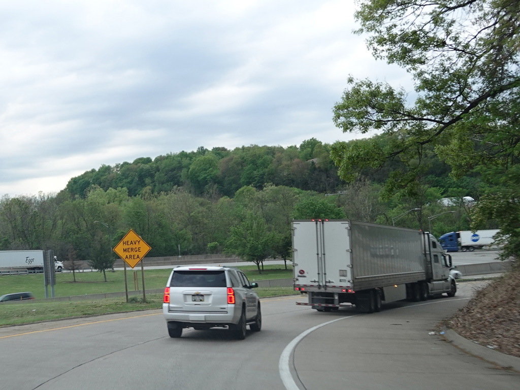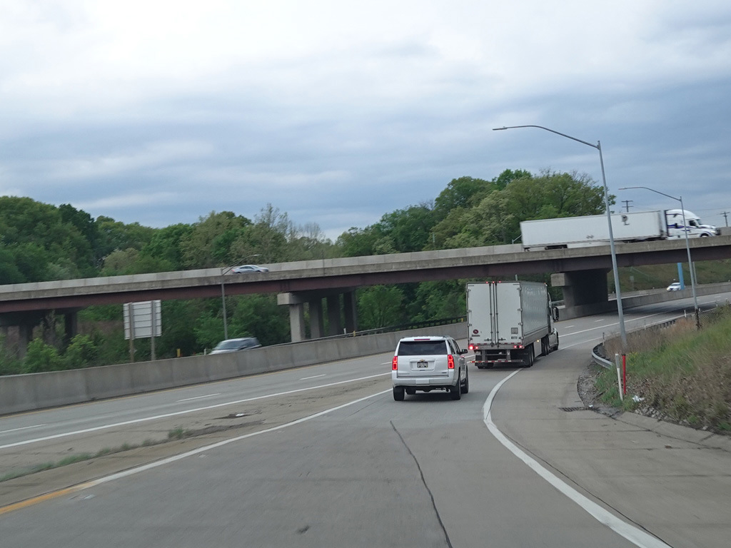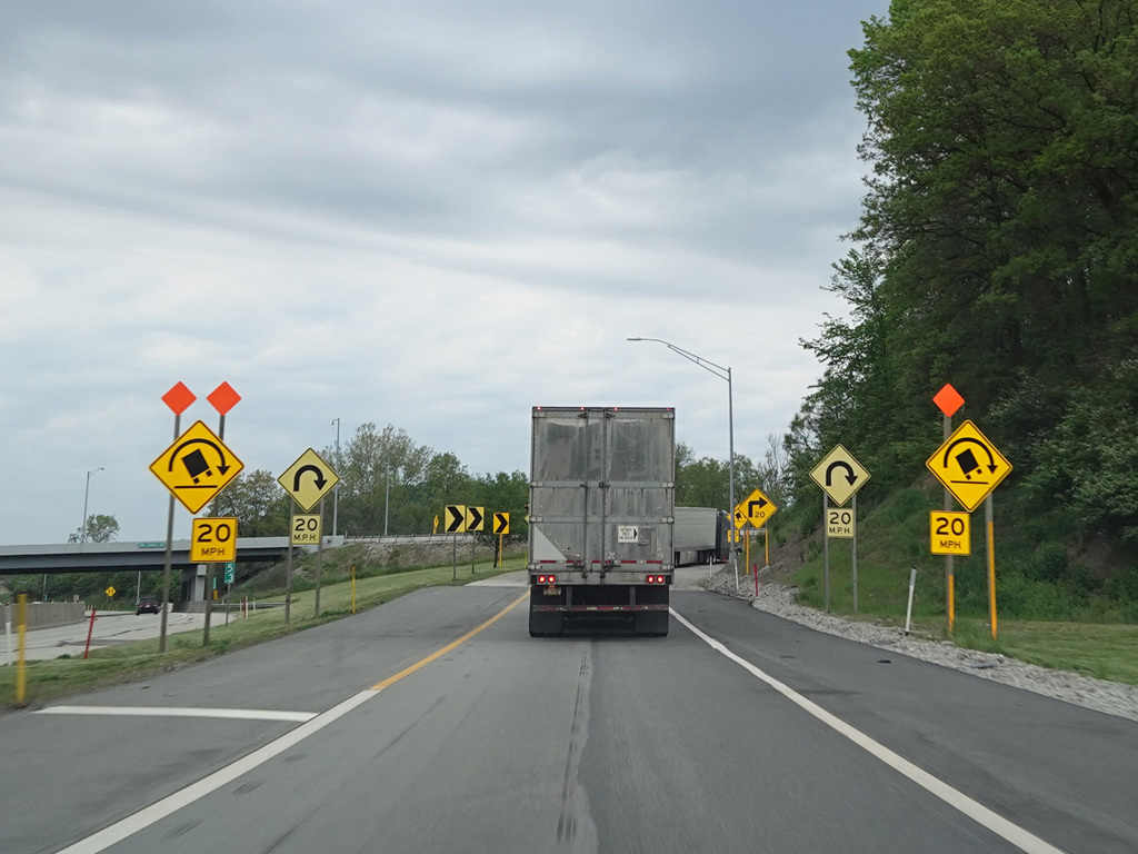 I-70 splits off from the Pennsylvania Turnpike (I-76) at exit 75 in New Stanton, following a ramp that has only one lane.