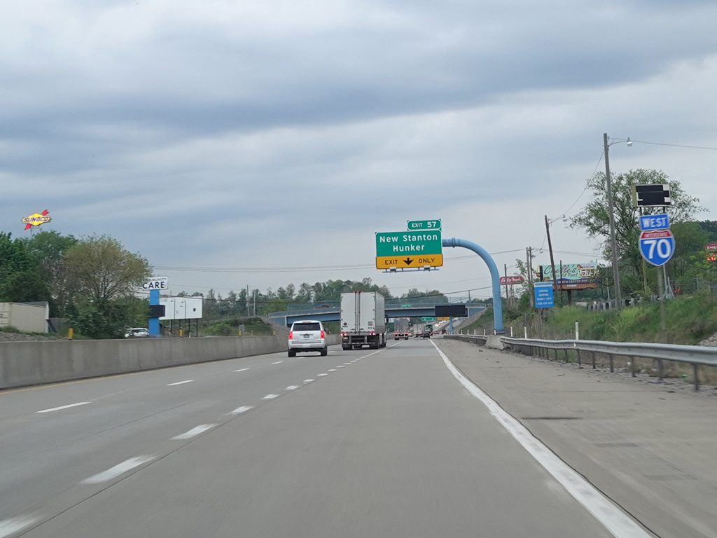 Exit 57 is for New Stanton and Hunker. The exit leads to Bair Boulevard, but only the town names are posted.