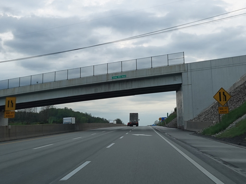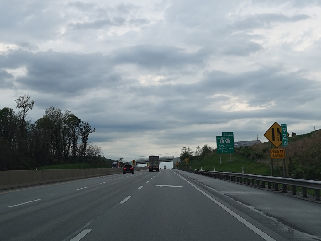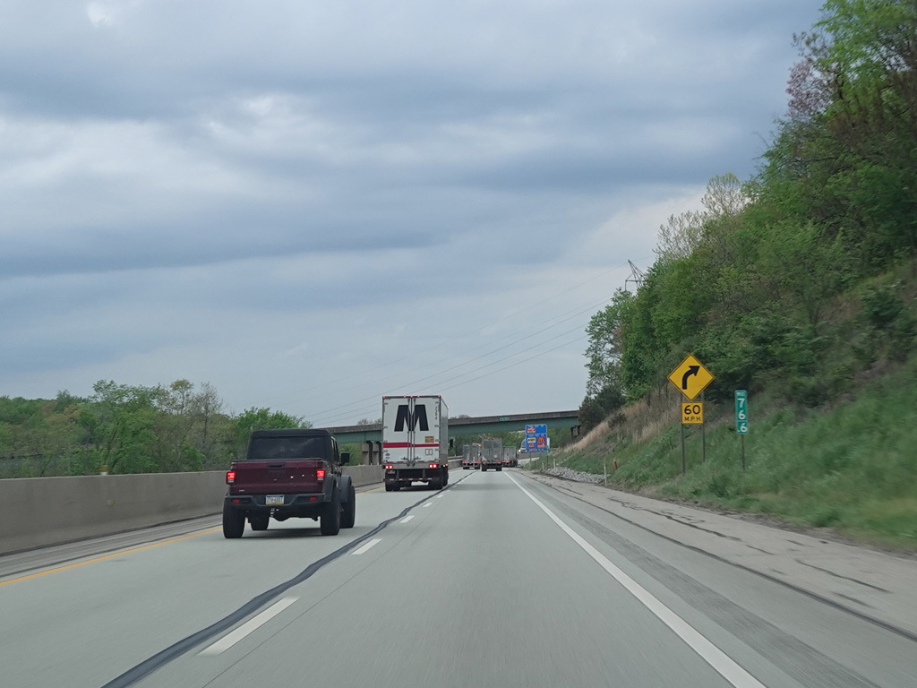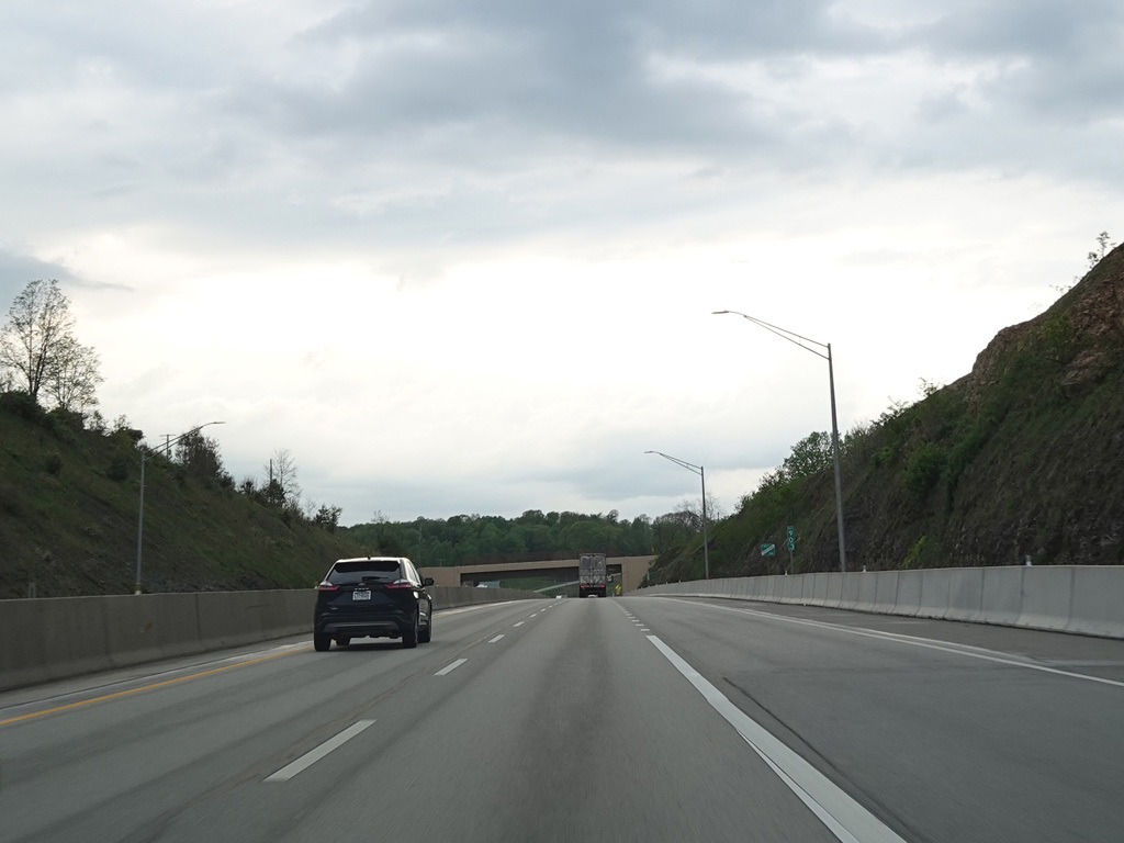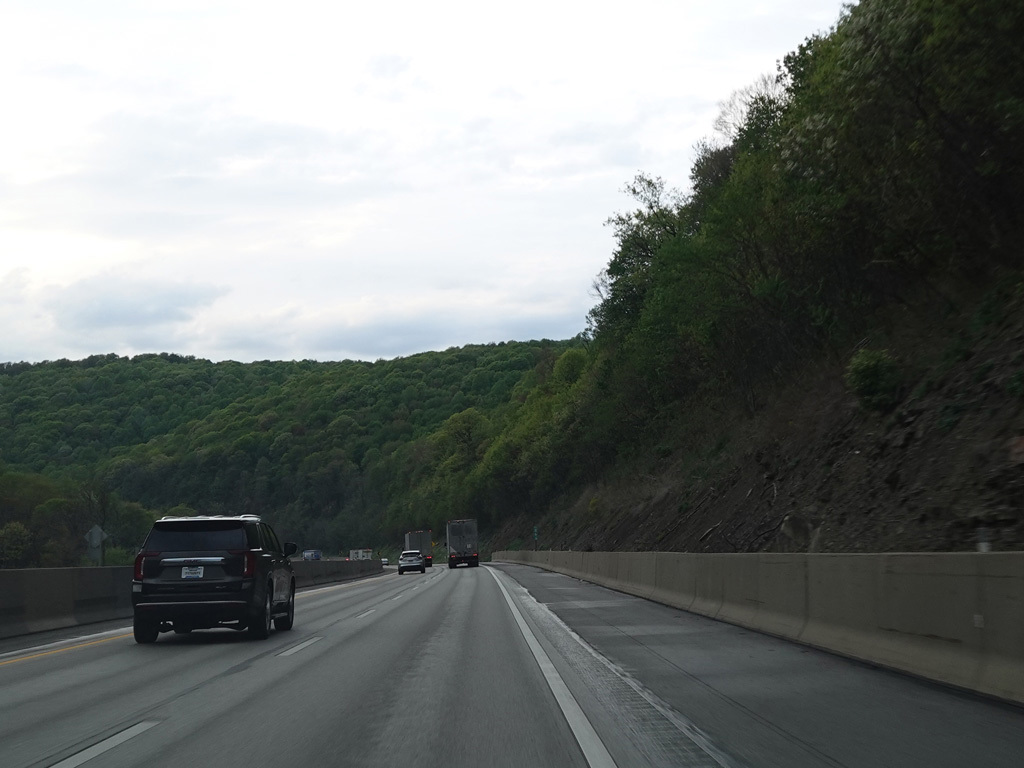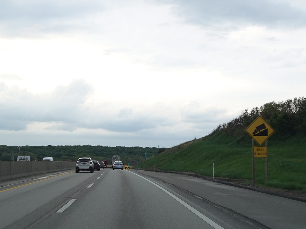 There is another short stretch where the turnpike has three westbound lanes as it goes uphill.
