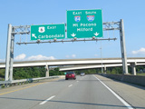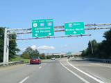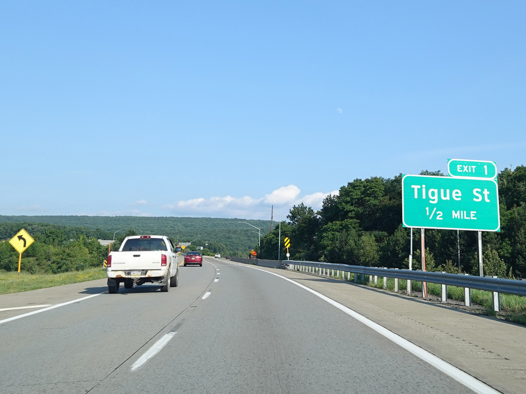Exit 186 is an exit from the ramp for exit 187. After it, the ramp splits. Bear left for the Lackawanna Valley Industrial Highway (US 6) east. Bear right for I-84/I-380. After the split, there is signage along the ramp for exit 1 of I-84/I-380, which is for Tigue Street.