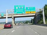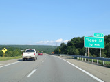 The ramp for exit 1 when travelling south ends at a traffic light at Mason-Dixon Road (PA 163). Turn right to go east or left to go west.