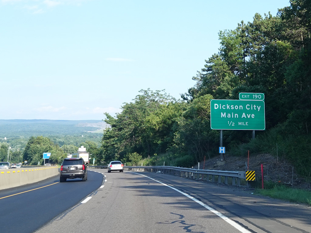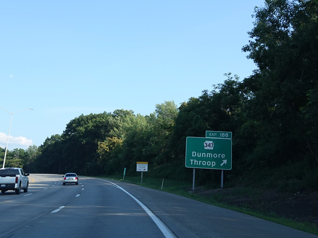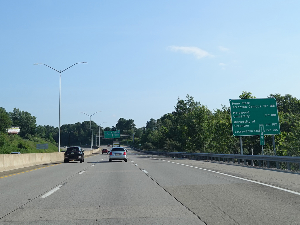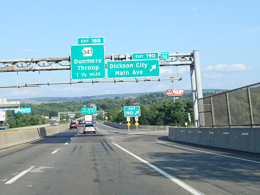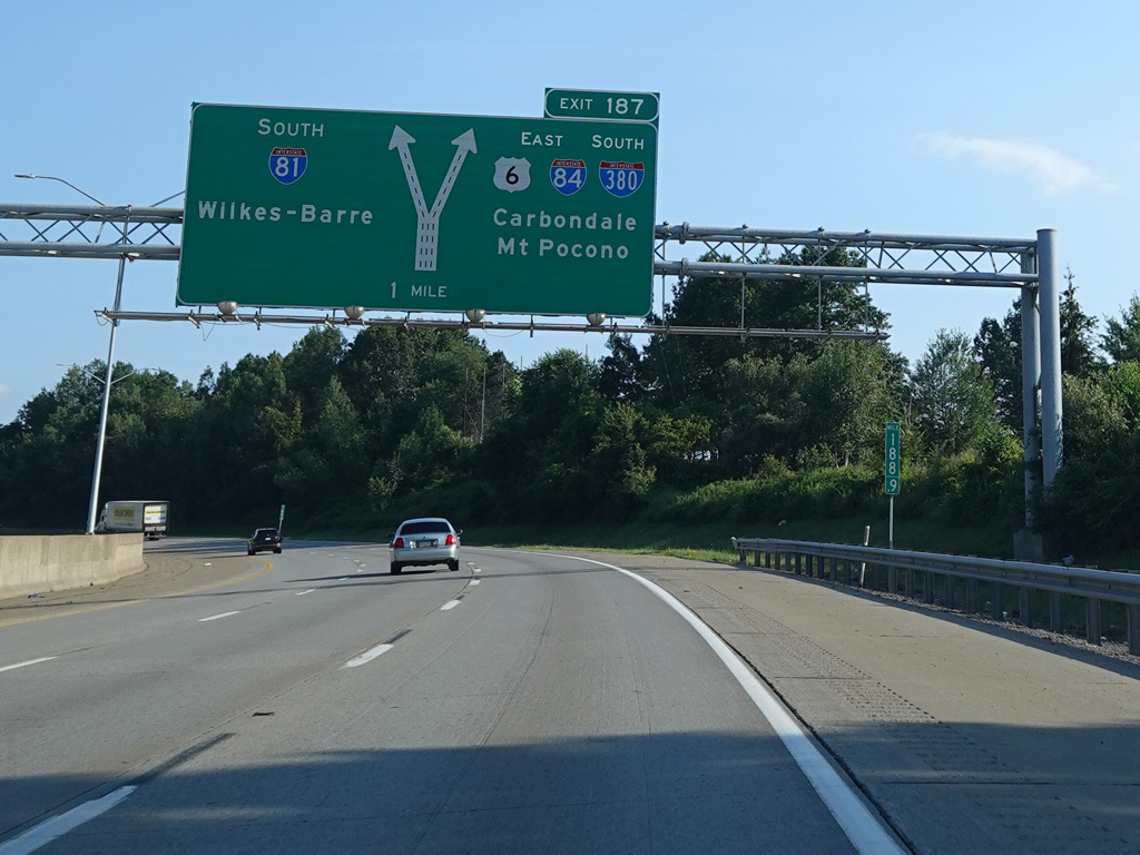 Exit 187 is for the Lackawanna Valley Industrial Highway (US 6) east and I-84/I-380 east/south.