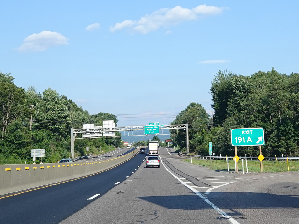 Exit 191B is for the North Scranton Expressway (US 11) south. Exit 191A is for Scranton-Carbondale Highway (Business US 6) east.