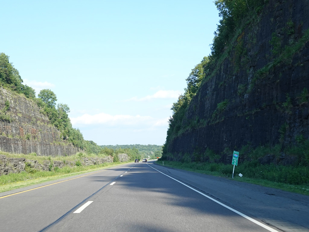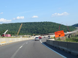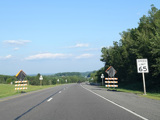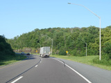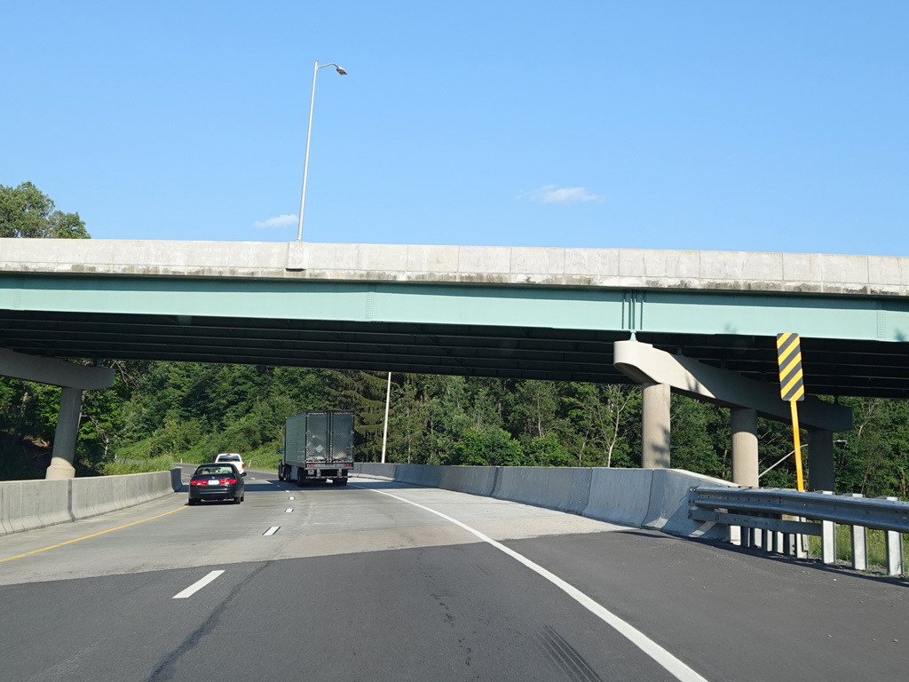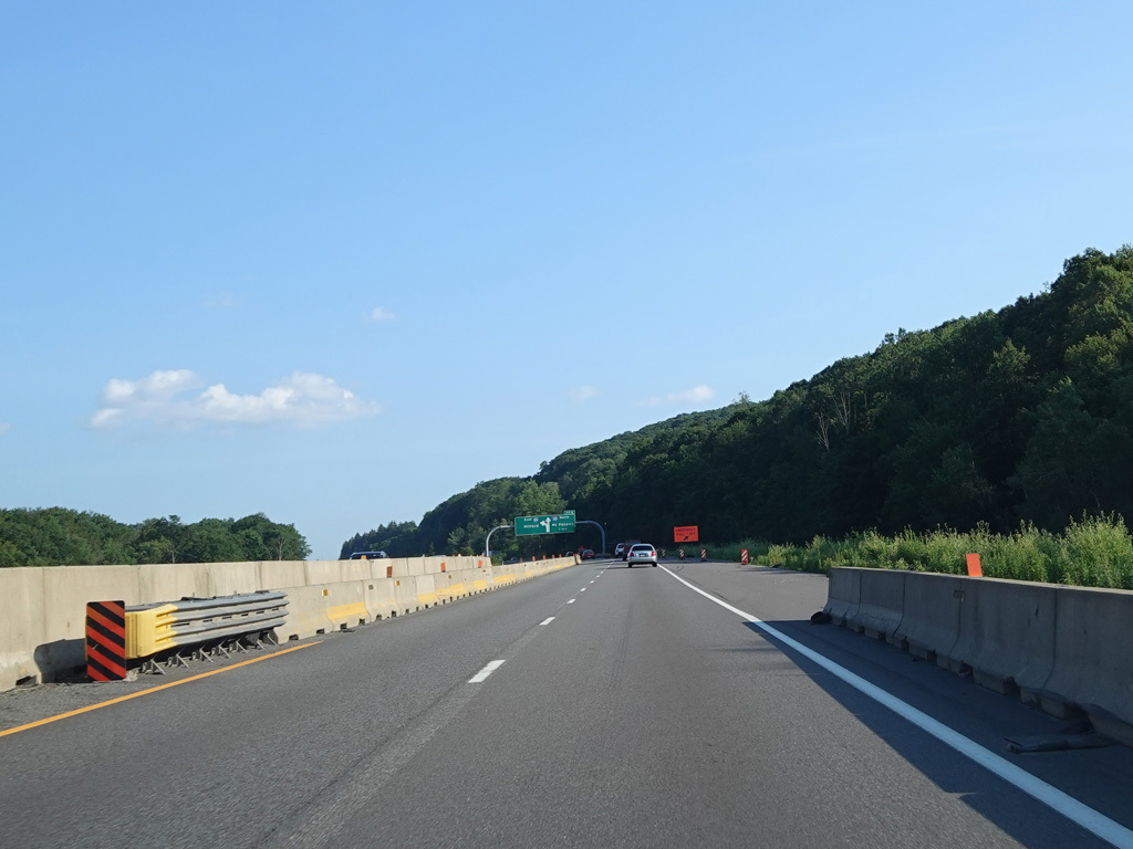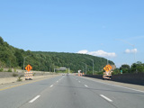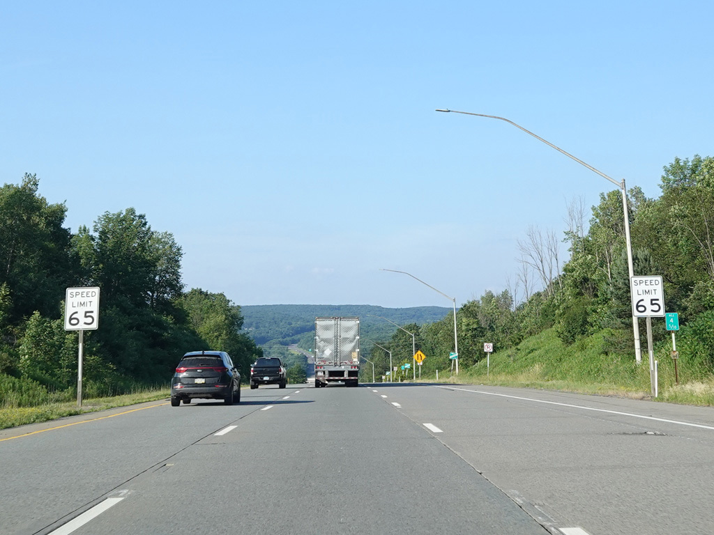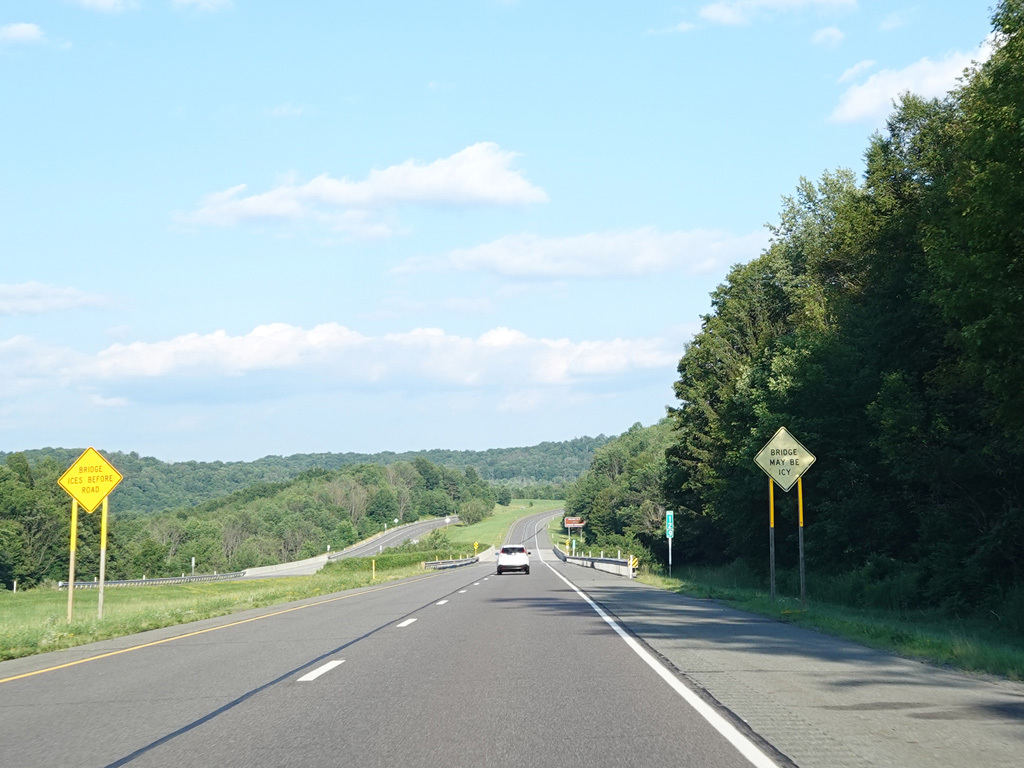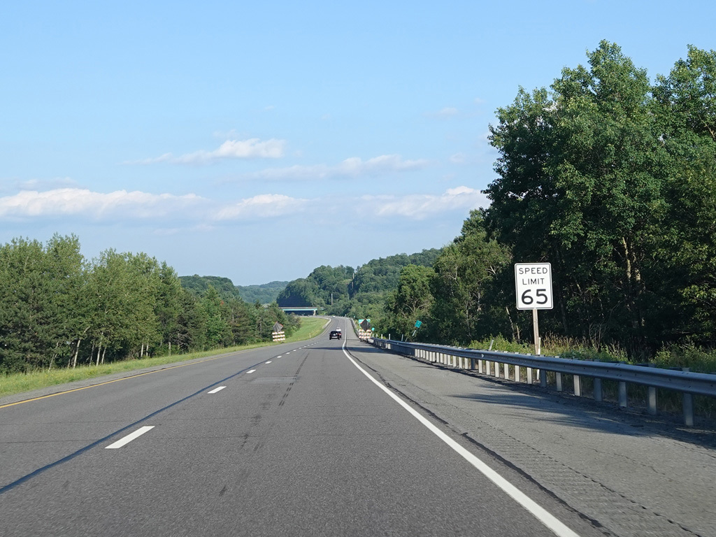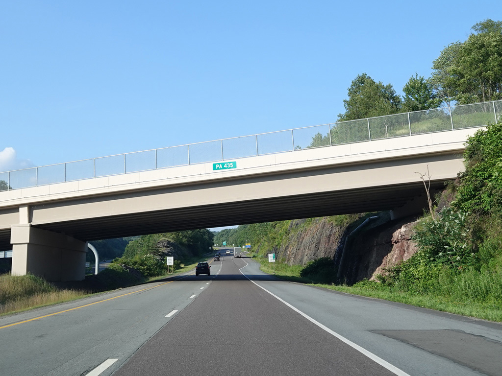 East of exit 4, there is a third northbound lane as the highway goes uphill. Exit 8 is for PA 247 and Mount Cobb Road (PA 348).